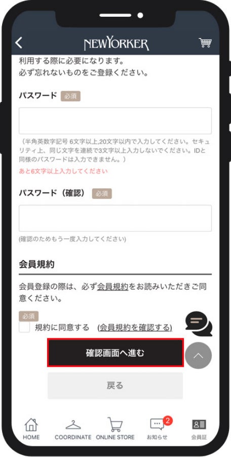 「確認画面へ進む」をタップしてください。