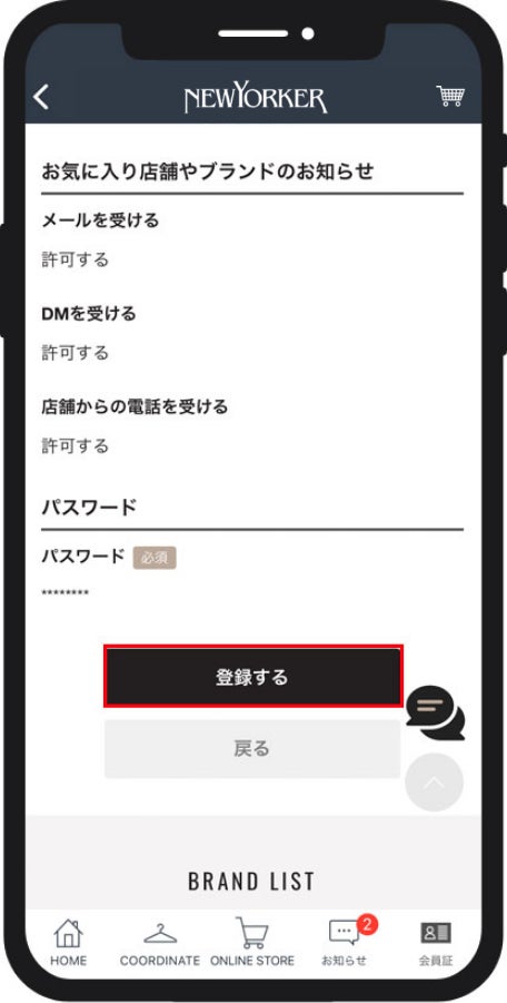 内容をご確認いただき「登録する」をタップしてください。