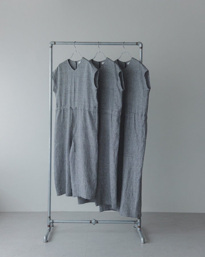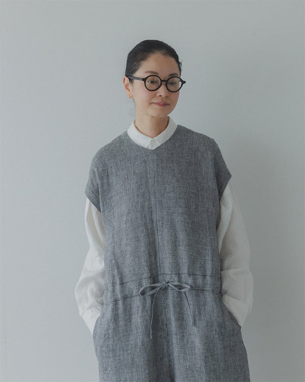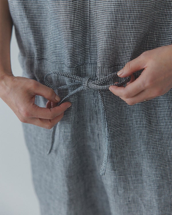北欧、暮らしの道具店×かぐれ コラボ第二弾 「後ろ姿に、アクセント」千鳥柄のリネンオールインワン