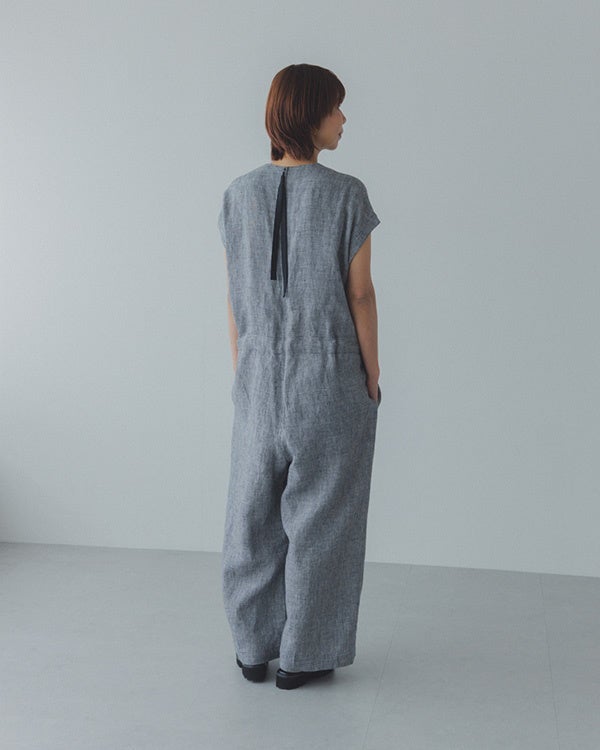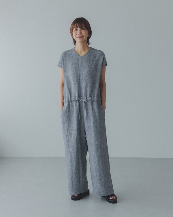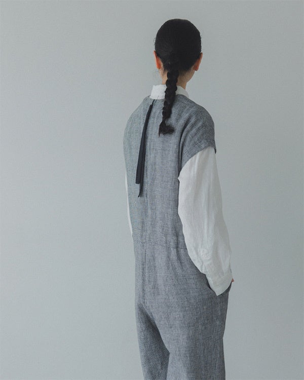品名:「後ろ姿に、アクセント」千鳥柄のリネンオールインワン