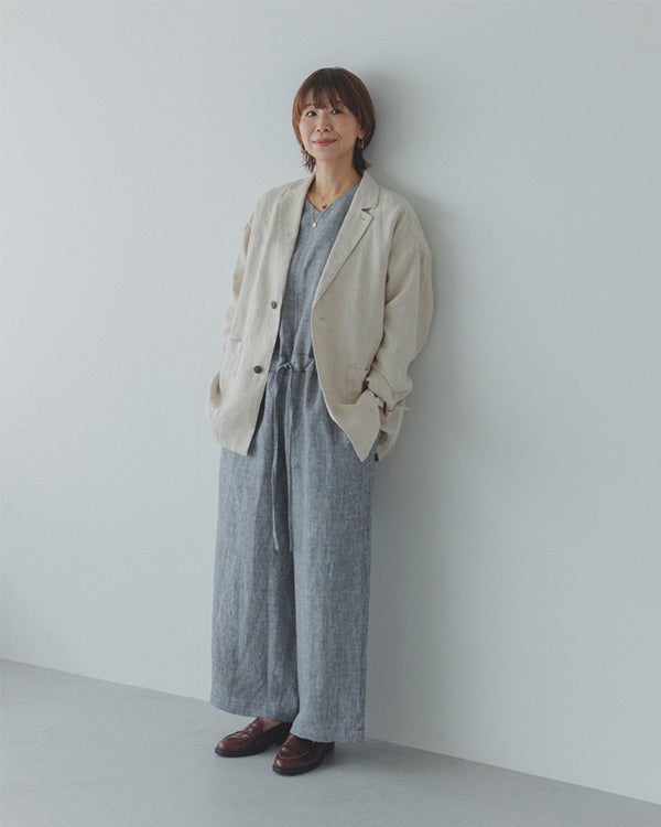 「リネンならではのニュアンスが、ほどよく力の抜けた大人なコーディネートにまとめてくれるなと思います」