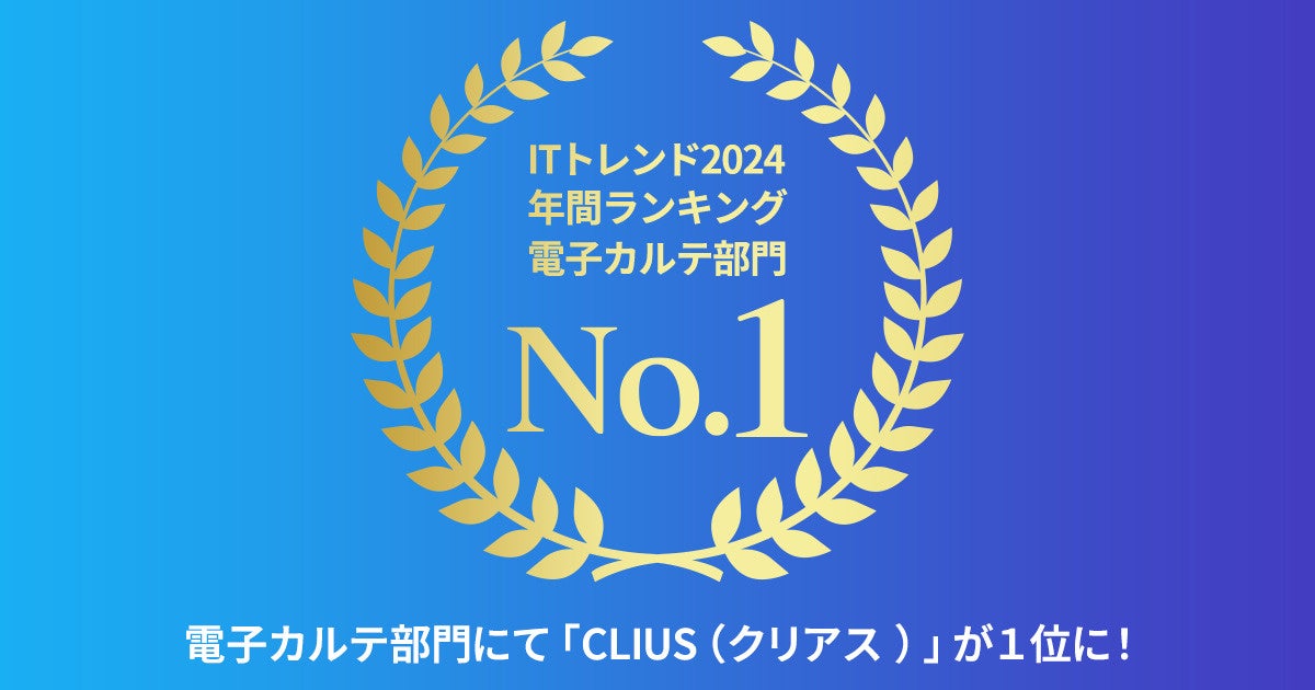 クラウド型電子カルテ「CLIUS(クリアス)」が「ITトレンド年間ランキング2024」の電子カルテ部門で1位を獲得