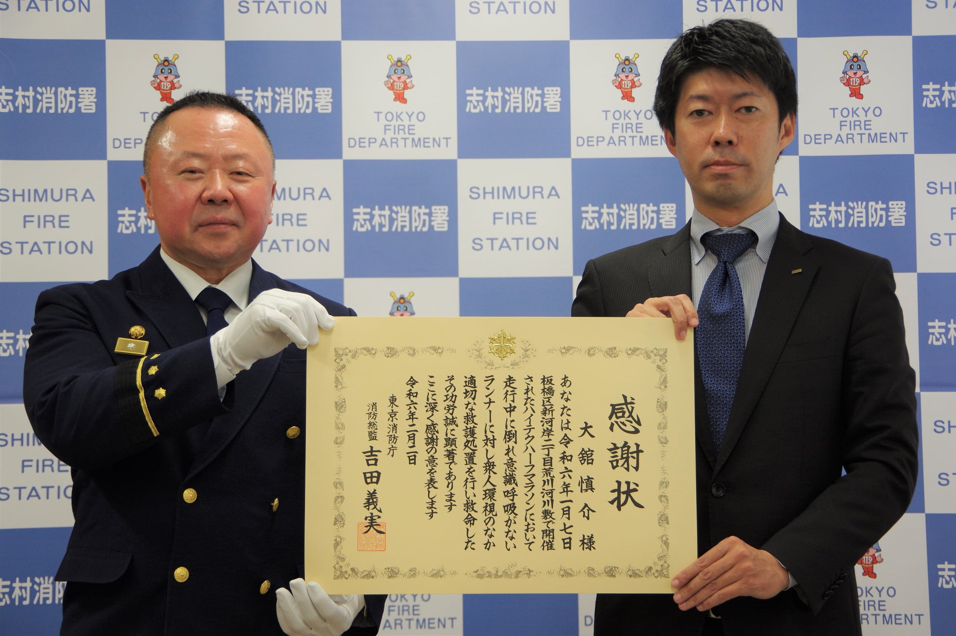 知識と経験を活かした勇気ある対応 東京消防庁より、人命救助に対する感謝状を授与