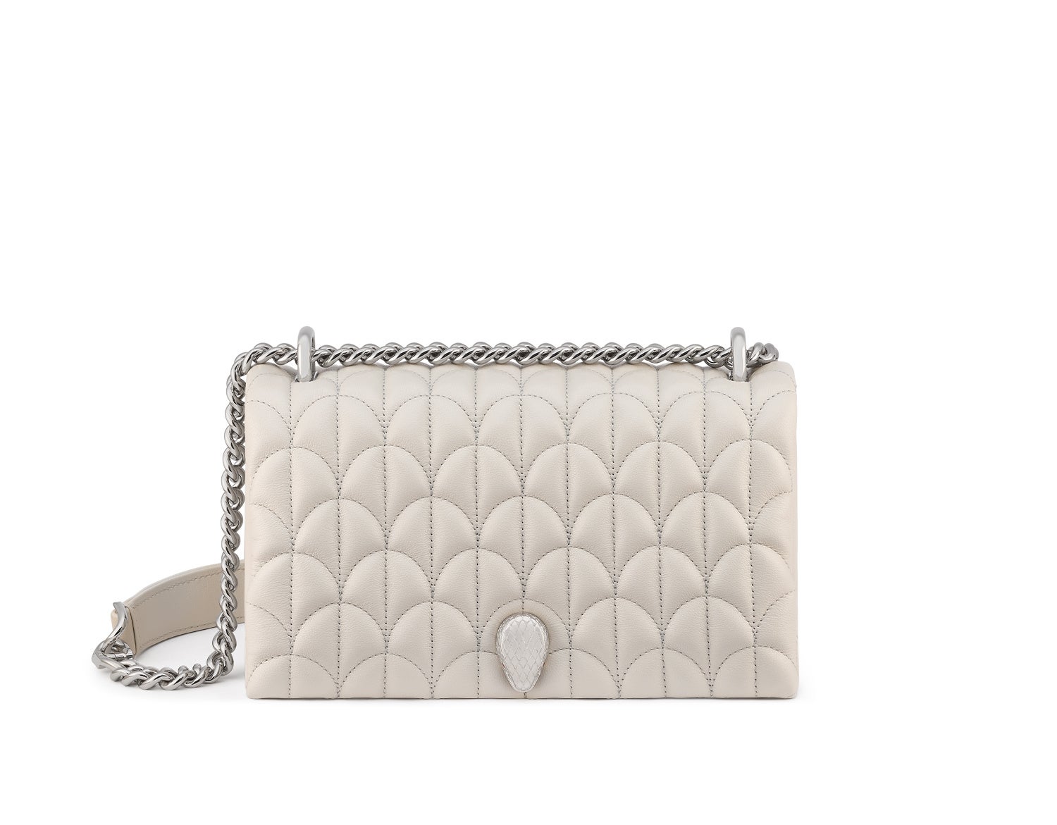 本コレクションより、宝石のようにエレガントにきらめくバッグやブルガリの特徴的なカボションカットを彷彿とさせる複雑なマトラッセがあしらわれたバッグの他、貴重な宝石のファセットカットに見立てたトラペーズ シェイプのバッグがホワイトアゲートカラーやクリスタルをあしらった煌びやかなジュエリーライクなカラーリングで登場します。
