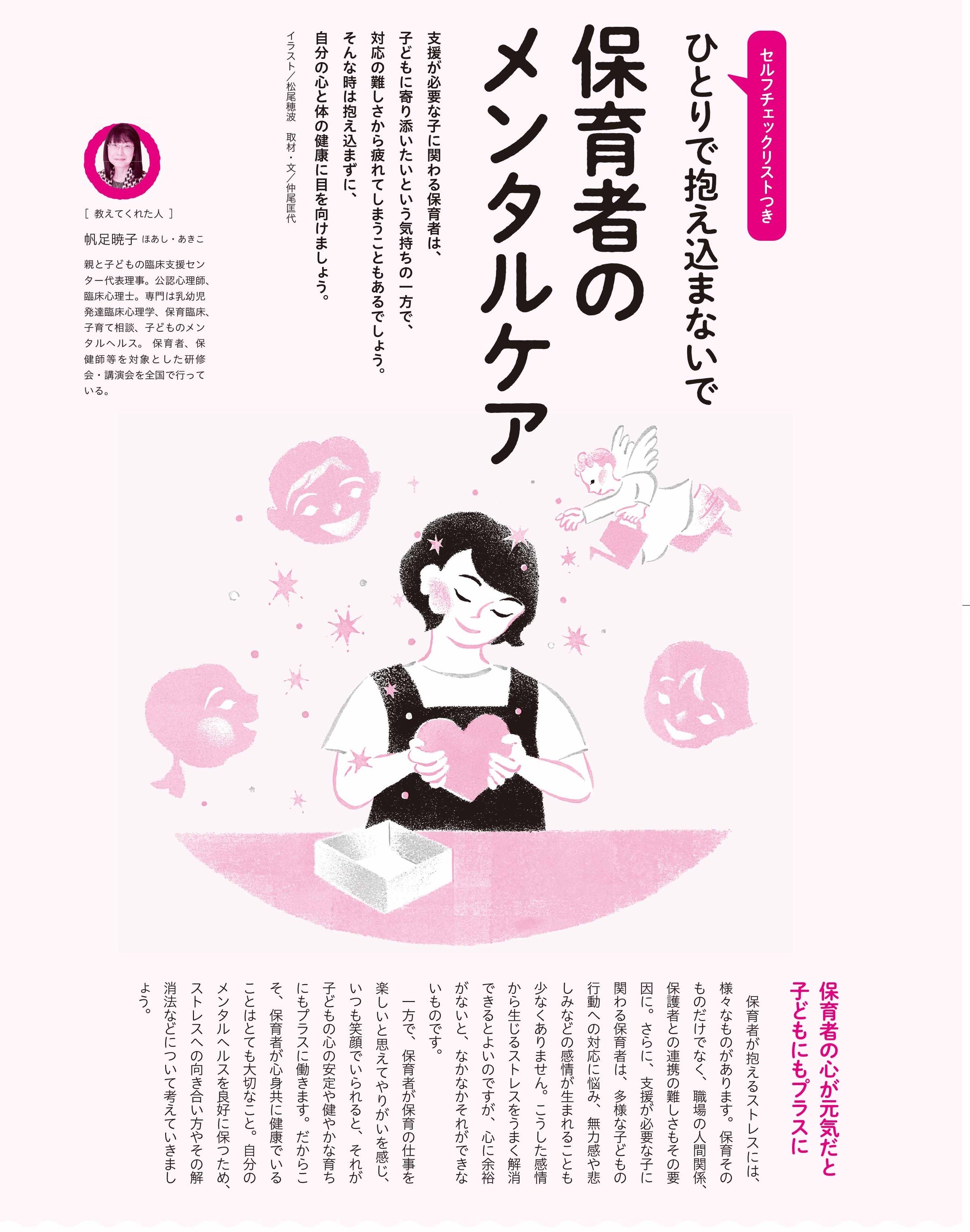 読み物特集は、支援者のためのメンタルケア。ストレスとの上手な付き合い方や解消方法をレクチャーします。