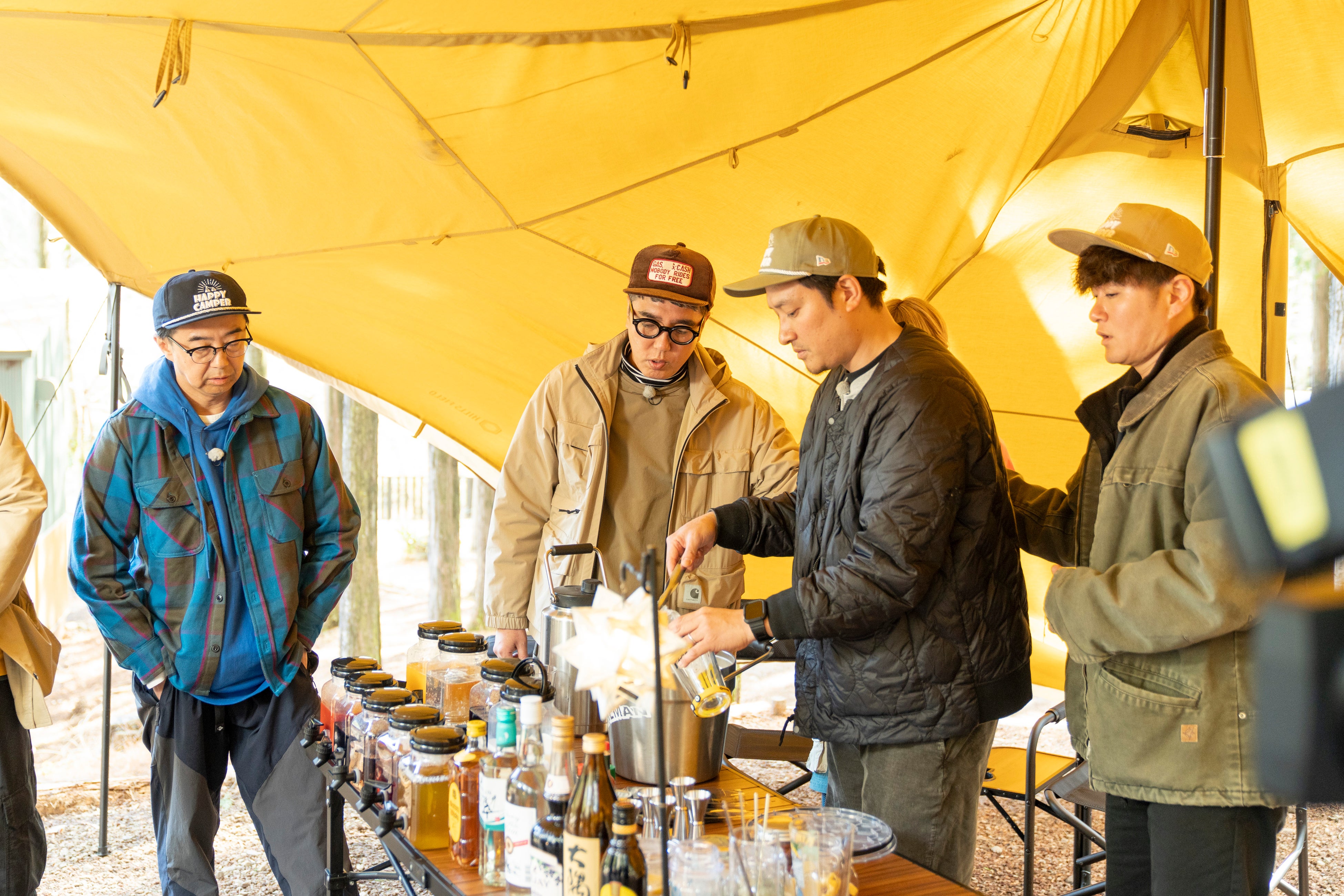「……うまくないな(笑)」と本音がこぼれ、酒好きの岡野に味見してもらうも「あっ、これおいしくないです。」と一蹴する結果に。「あんなにこだわったのに!」と大自然の中で笑い声が飛び交った。