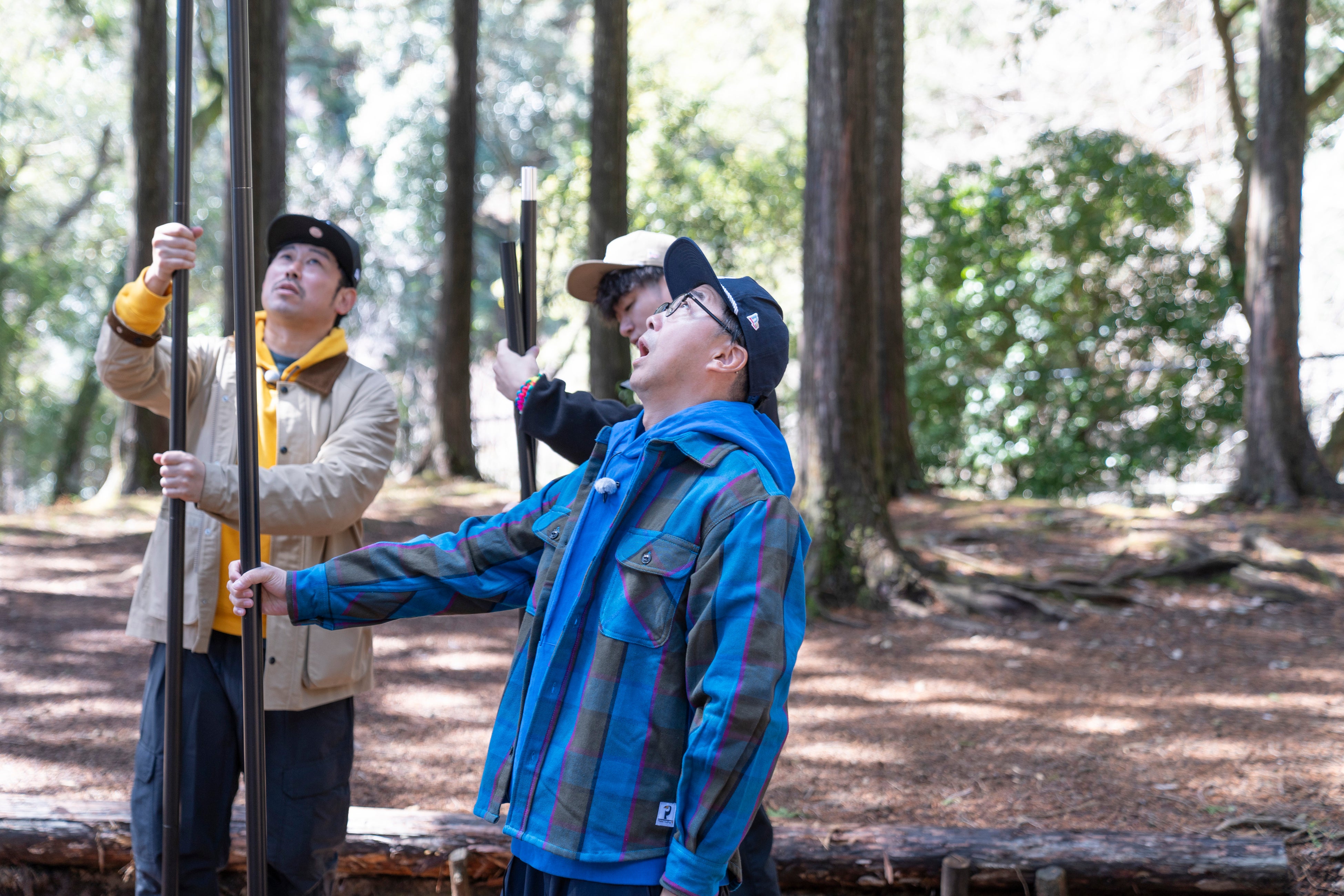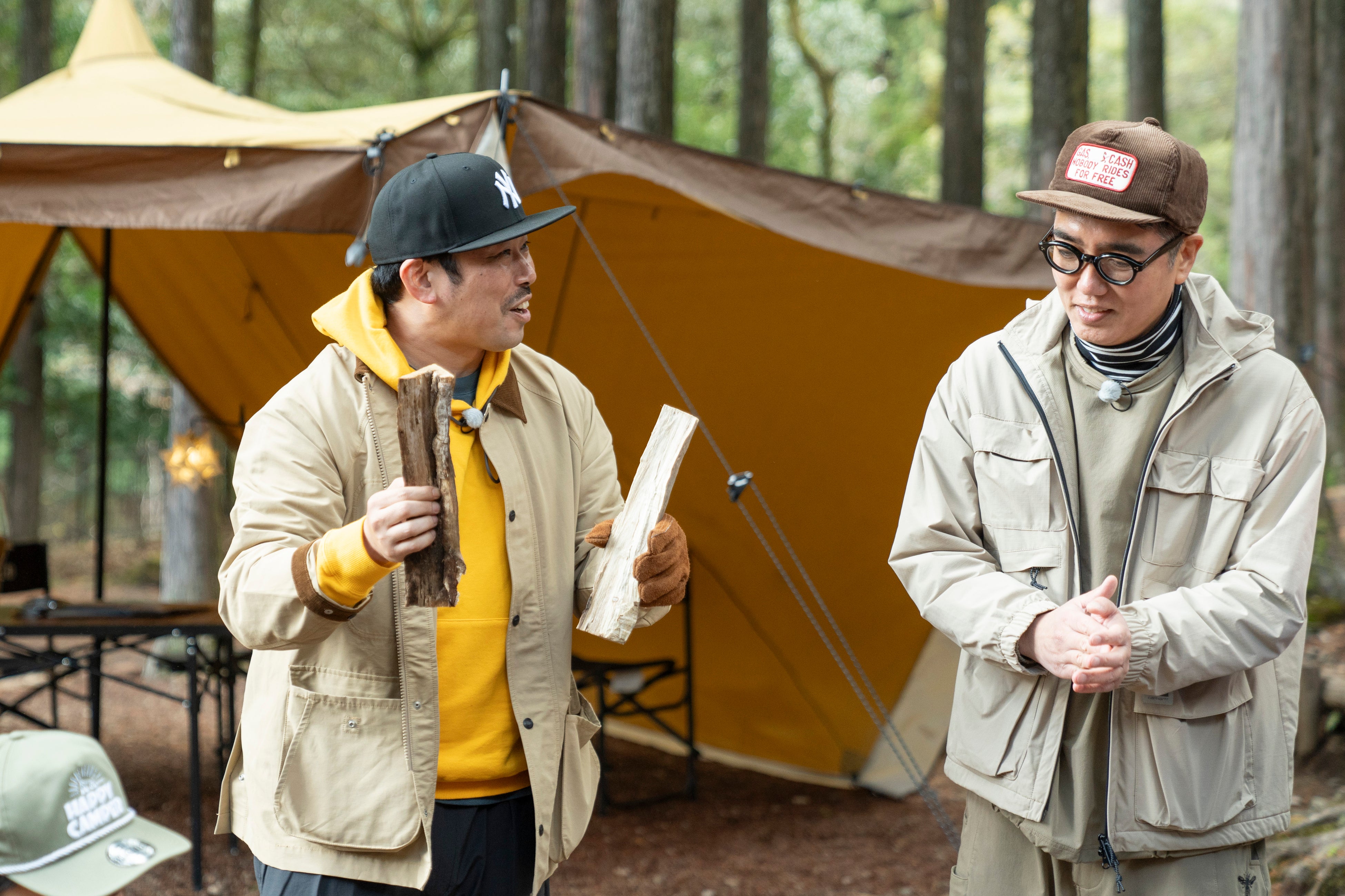 早速、岡野はタープの連結に挑戦!伊豆のぬし釣り指導のもと、30人程が入れる大宴会スペースを作ることに。すると、今井アンジェリカから「ポールを持っているだけでカッコイイ!山の主みたい」と男性陣を好評価。しかし、渡された長いポールを持つ岡野の姿を見た今井は「西遊記だ!(笑)」と大爆笑。「えーっと…猪八戒?」という小木のコメントに対し、岡野が「沙悟浄だろ!どっちかと言うと」とすかさずツッコミを入れ現場は笑いに包まれた。