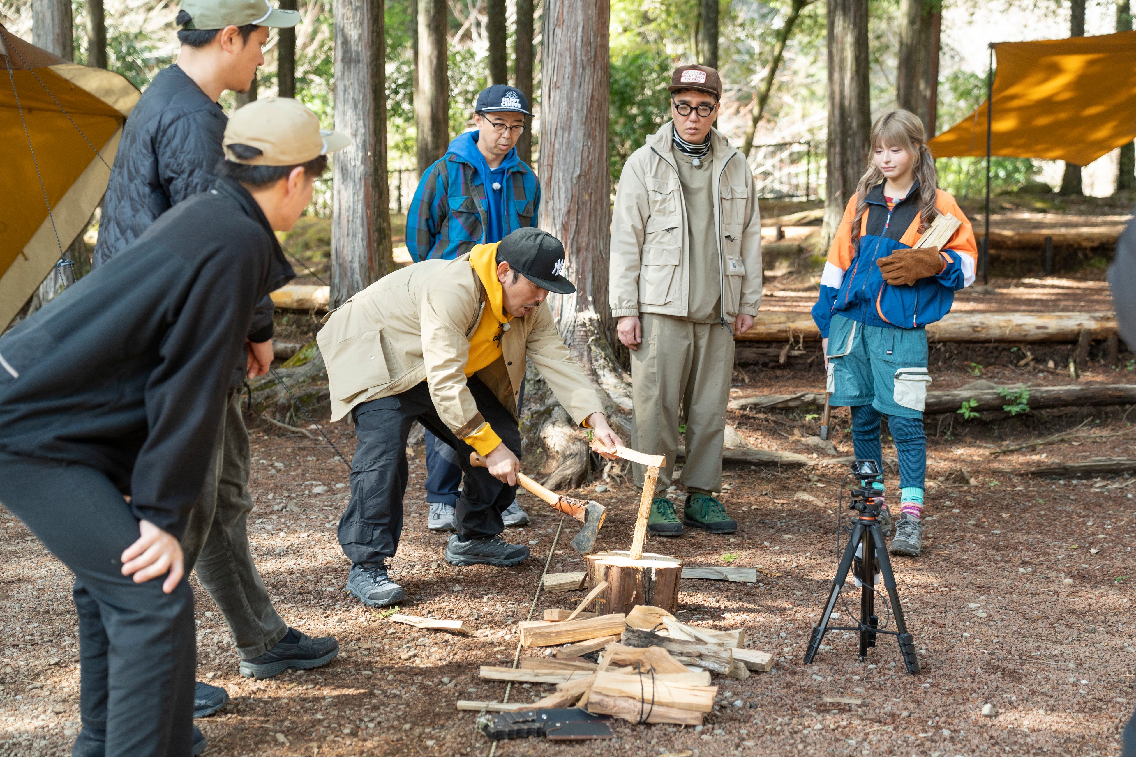 さらに、一同は薪割りにもチャレンジ!YouTubeで数え切れないほどの薪を割ってきたやまと(伊豆のぬし釣り)が、見事な手捌きで「パッカーン!」とお手本を見せると、初心者の岡野もまさかの1発で成功!しかし、成功しているはずの岡野に「なんか気持ちよくないんだよな」「後味が悪い」とまわりから理不尽なクレームが続出。腕前は確かなはずなのに、なぜか見ていてスカッとしない…。矢作も「なんか盛り上がらないんだよな」と思わず首をかしげ、謎の「後味の悪さ」を残したまま、薪割りは終了した。