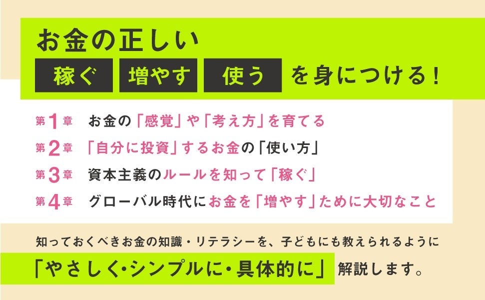 本書では、世界の金融市場の最前線で長らく働いてきた河村氏の経験と、そこから抽出した「お金に困らない自由な人生を手にする方法」を、子どもにも教えられるように「やさしく・シンプルに・具体的に」伝えます。