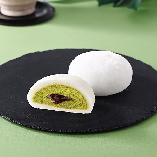 【内容】とろ~り大福生地に抹茶ホイップと黒蜜をやさしく包んだ、ふわもち食感が特長の生大福です。