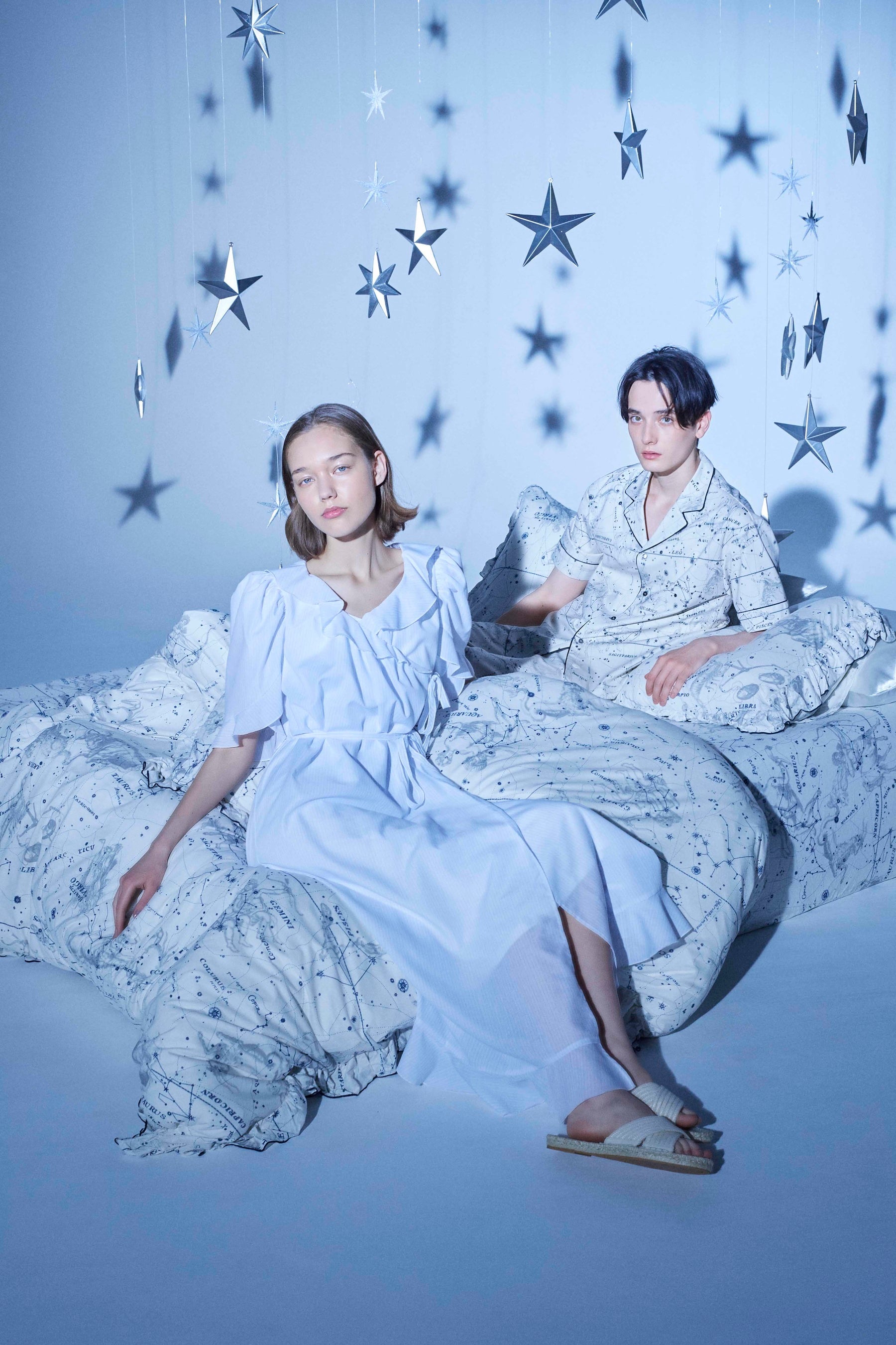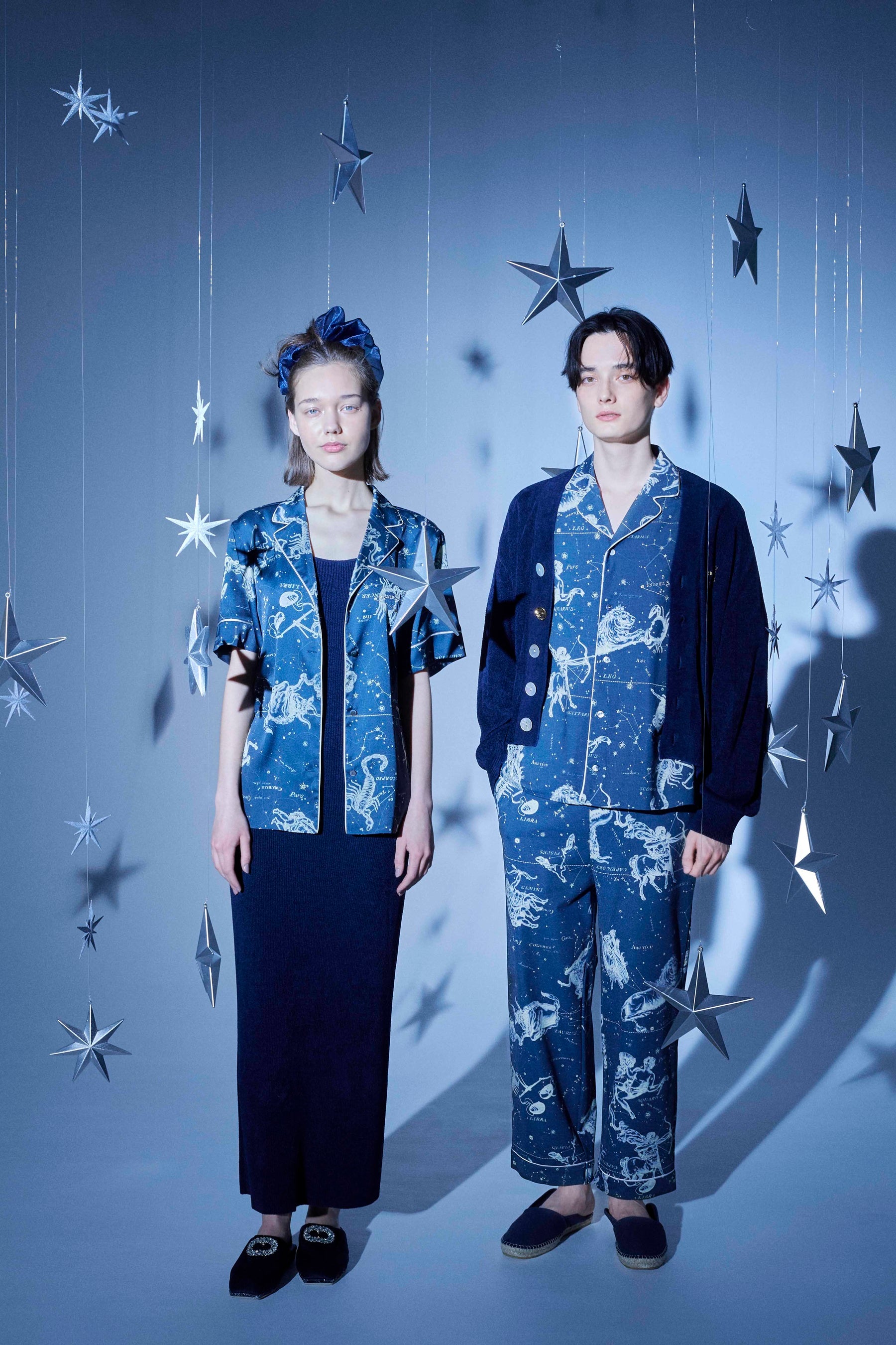 12星座をモチーフに、男女ペアで楽しめるルームウェアからベッドリネンまで揃えたリュクスなコレクションが誕生。涼しげで大人っぽいオフホワイト、ミント、ネイビーの3色で揃えたサテン素材のパジャマは、襟や袖などにパイピングを施し上品なデザインに。同シリーズのカーディガンと合わせたコーディネートも素敵な着こなしに仕上がります。