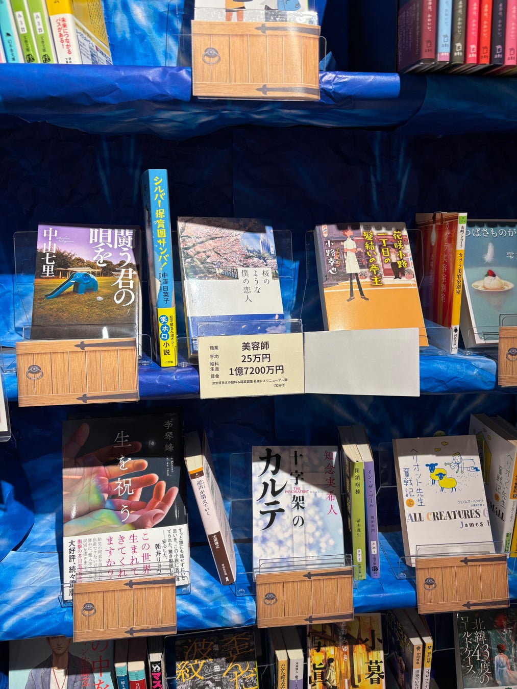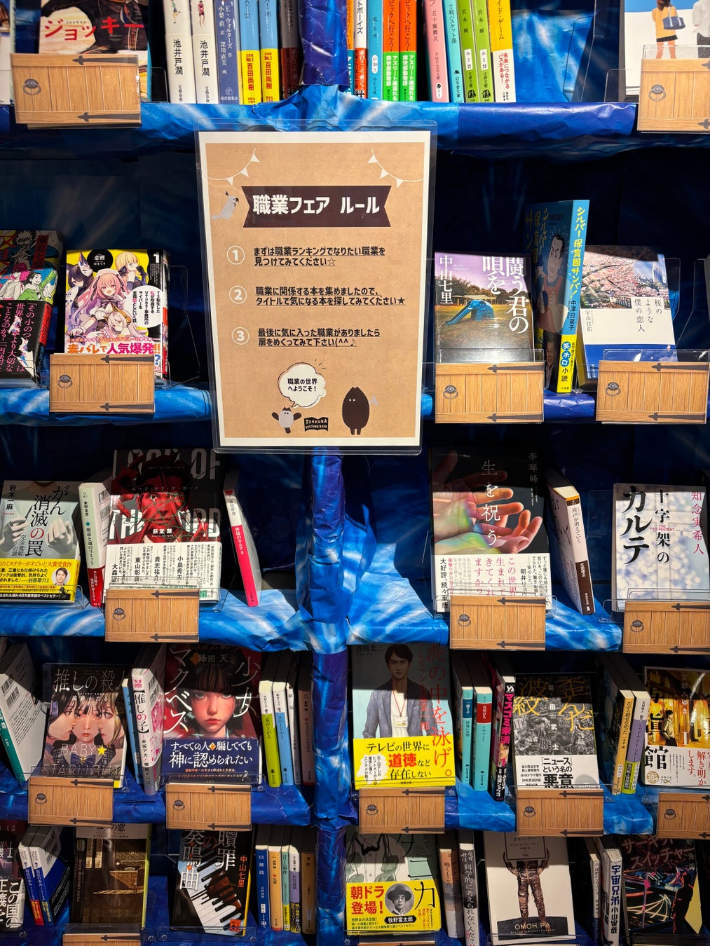 人気の職業から地域性、意外な職業が描かれている小説を選書。本を読む事で少しでも色々な職業を知ってもらい、その職業に就く準備を進める機会になればと思いフェアを考えました。
