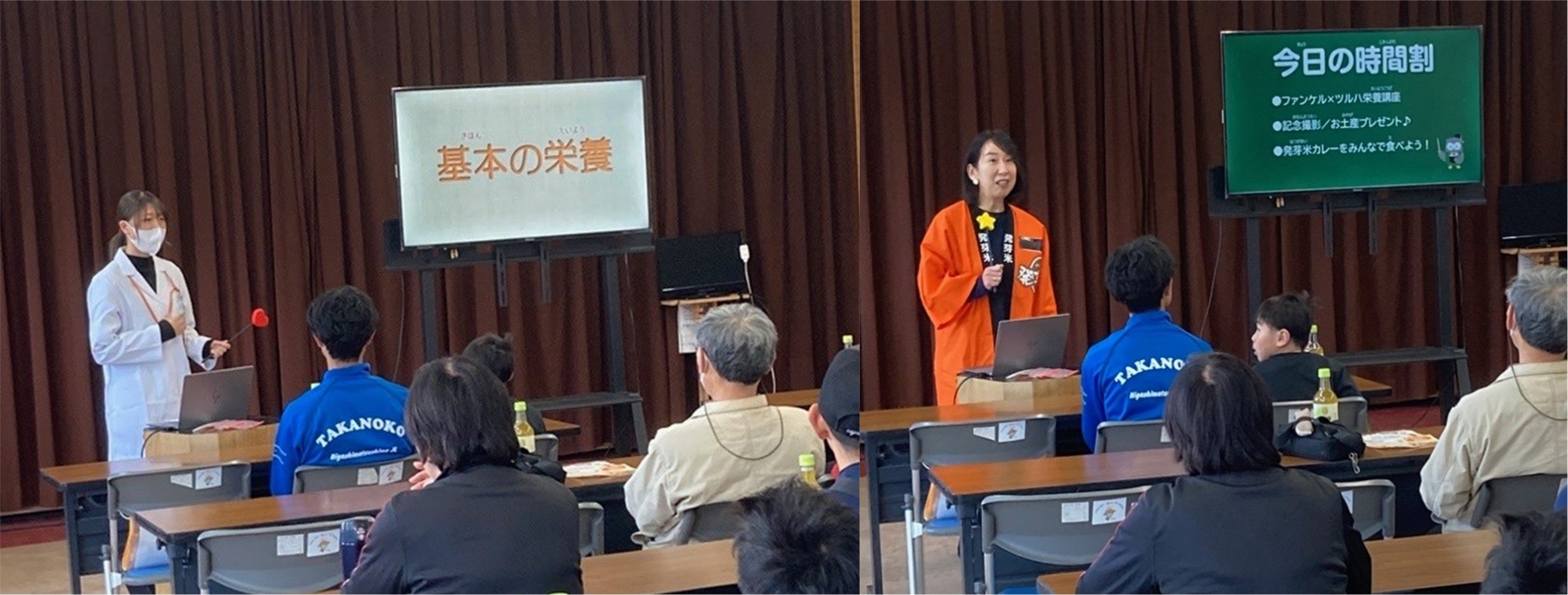 講座の最後には、発芽米を使ったカレーを全員で試食し、楽しい食事の時間を過ごしました。参加者からは、「発芽米は初めて食べたけどおいしかった」「発芽米は噛むと甘くてカレーとの相性が良い」「クイズがあって楽しく学べた」といった声が寄せられました。