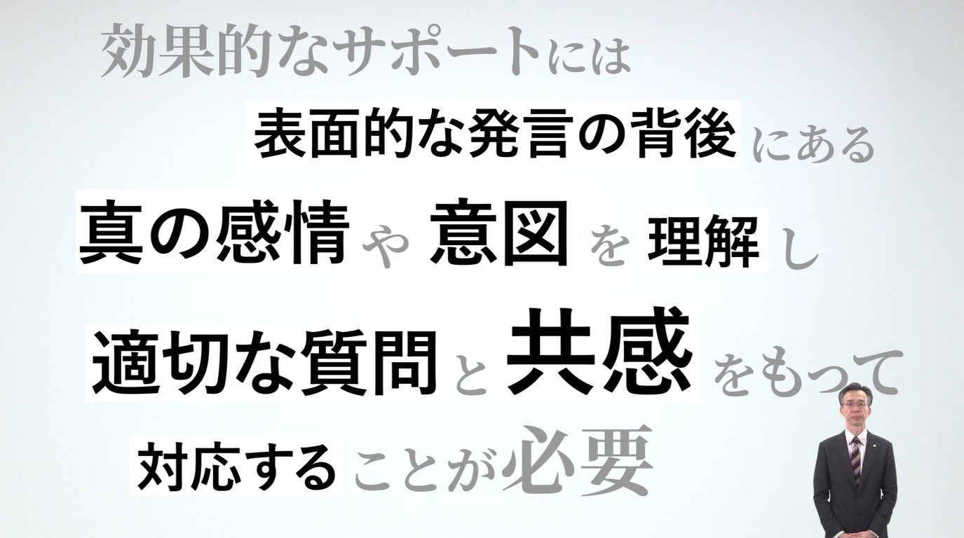 不適切な事例では、支援者として行ってしまいがちな点を戯画的に表現しています。適切な事例では、アドバイザーが実際現場で行う対応方法をご紹介します。