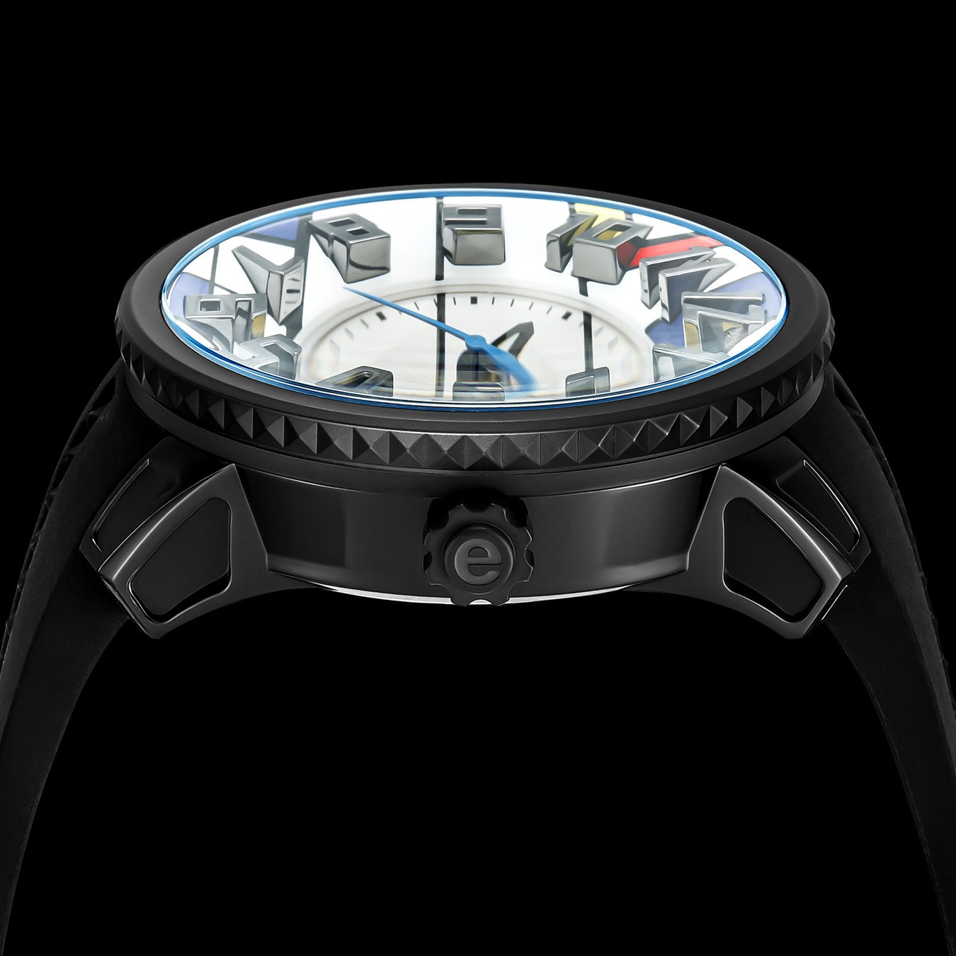ファッションにも多大な影響を与えた19世紀末〜20世紀初頭のアーティスト「ピート・モンドリアン」の代表作「コンポジション」を文字盤に大胆に表現しました。