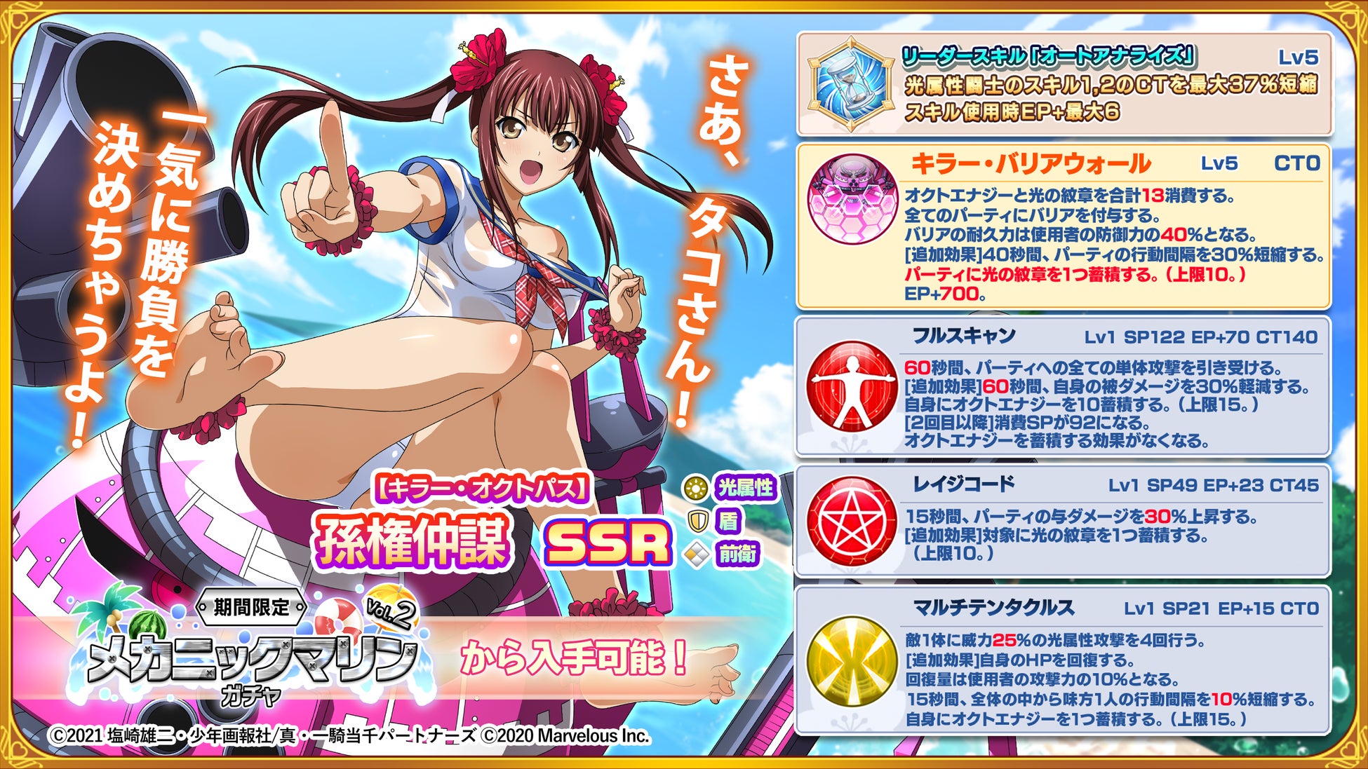 株式会社マーベラス(代表取締役社長 佐藤澄宣/所在地:東京都品川区)は、大人気シリーズ「一騎当千」のAndroid/iOS向け新作ゲームアプリ『一騎当千エクストラバースト』で、2023年7月5日(水)からシナリオイベント「大熱戦!ハイパー水着メカバトル」後半を開始したことをお知らせいたします。