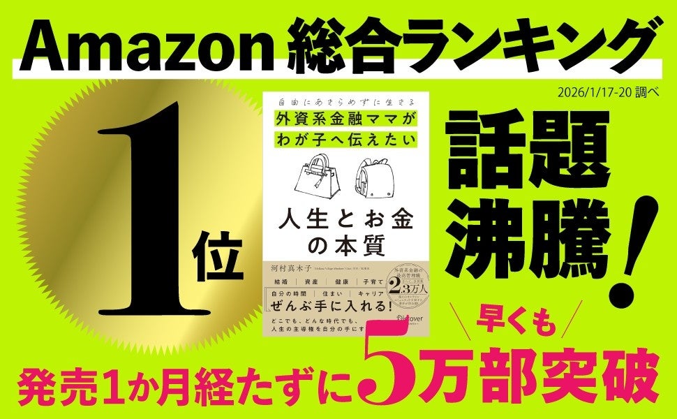 外資系金融機関の最高管理職を経験し、現在は総会員数2.7万人の国内最大規模のオンラインコミュニティを運営する起業家・河村真木子氏が、初めて自身の人生とお金の哲学を公開した1冊です。Amazon総合ランキング1位を獲得(売れ筋ランキング カテゴリ 本[2026/1/17-20調べ])、発売直後より書店・ネット書店で売れており、早くも5万部を突破いたしました。