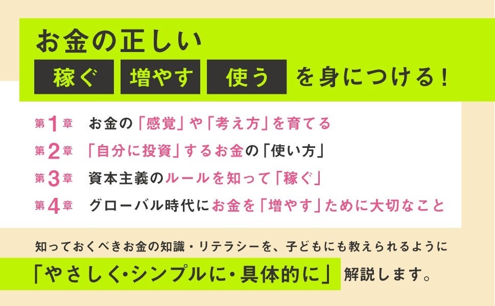 本書では、世界の金融市場の最前線で長らく働いてきた河村氏の経験と、そこから抽出した「お金に困らない自由な人生を手にする方法」を、子どもにも教えられるように「やさしく・シンプルに・具体的に」伝えます。