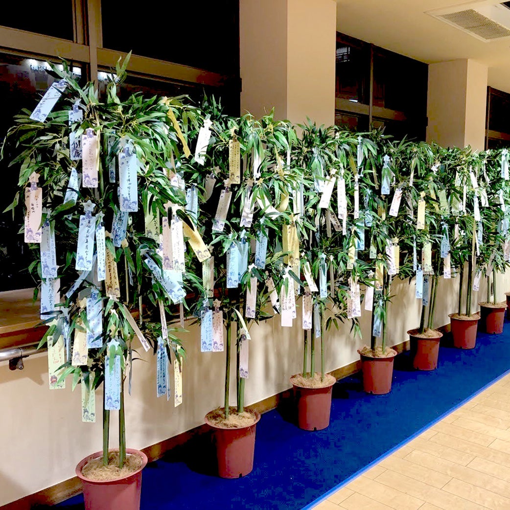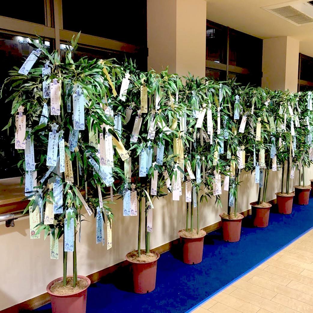 「ささのは」に願いごとをかざると願いが叶うや、悪いものから守ってくれるという言い伝えがあります。短冊に願いごとを書いて笹に付けてください。