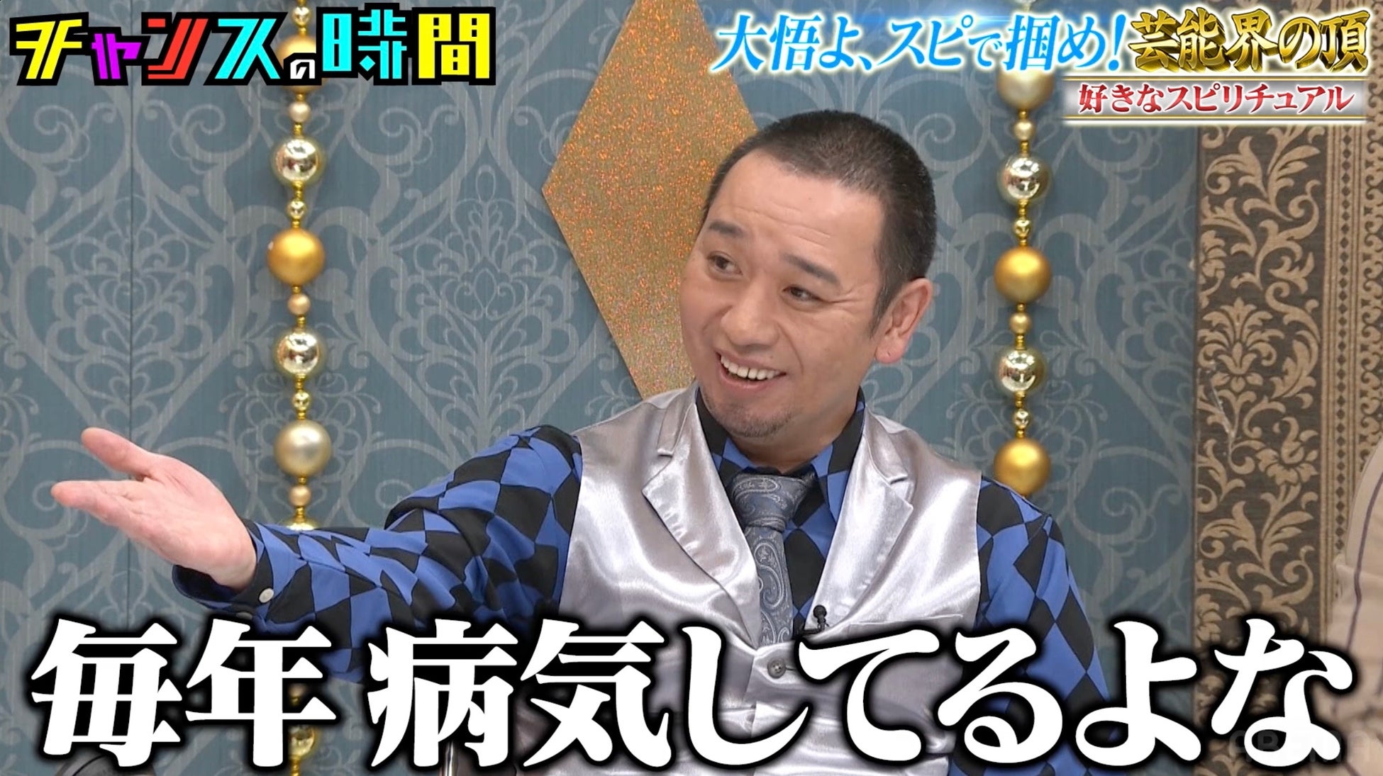 「神社・占い・自然の力」を信じているという吉田さんは「ちゃんと生きるということ」「占いは自分の人生の病院」と力説。「変なことに引きずられている時、戻さなあかんなって時は自然のお水飲んだり、ハチミツ舐めたり、お塩舐めたりしてまた戻ってくる」と語った吉田さんに、「素晴らしい」「自然の力って大事よね」と大きく頷くノブさんでしたが、大悟さんから「毎年病気してるよな」と痛烈な指摘を受け、思わず吹き出してしまうことに。「わし1回も入院したことないのに」と首を傾げる大悟さんに、真栄田さんは「あなたの分も背負ってるかもしれない」とフォローを入れ、ノブさんも「(大悟がいる)右側熱い」「右肩今日痛いなとかも、大悟の分だなって」と乗っかりますが、大悟さんは呆れたように「ゴルフやろ」とツッコミを入れました。