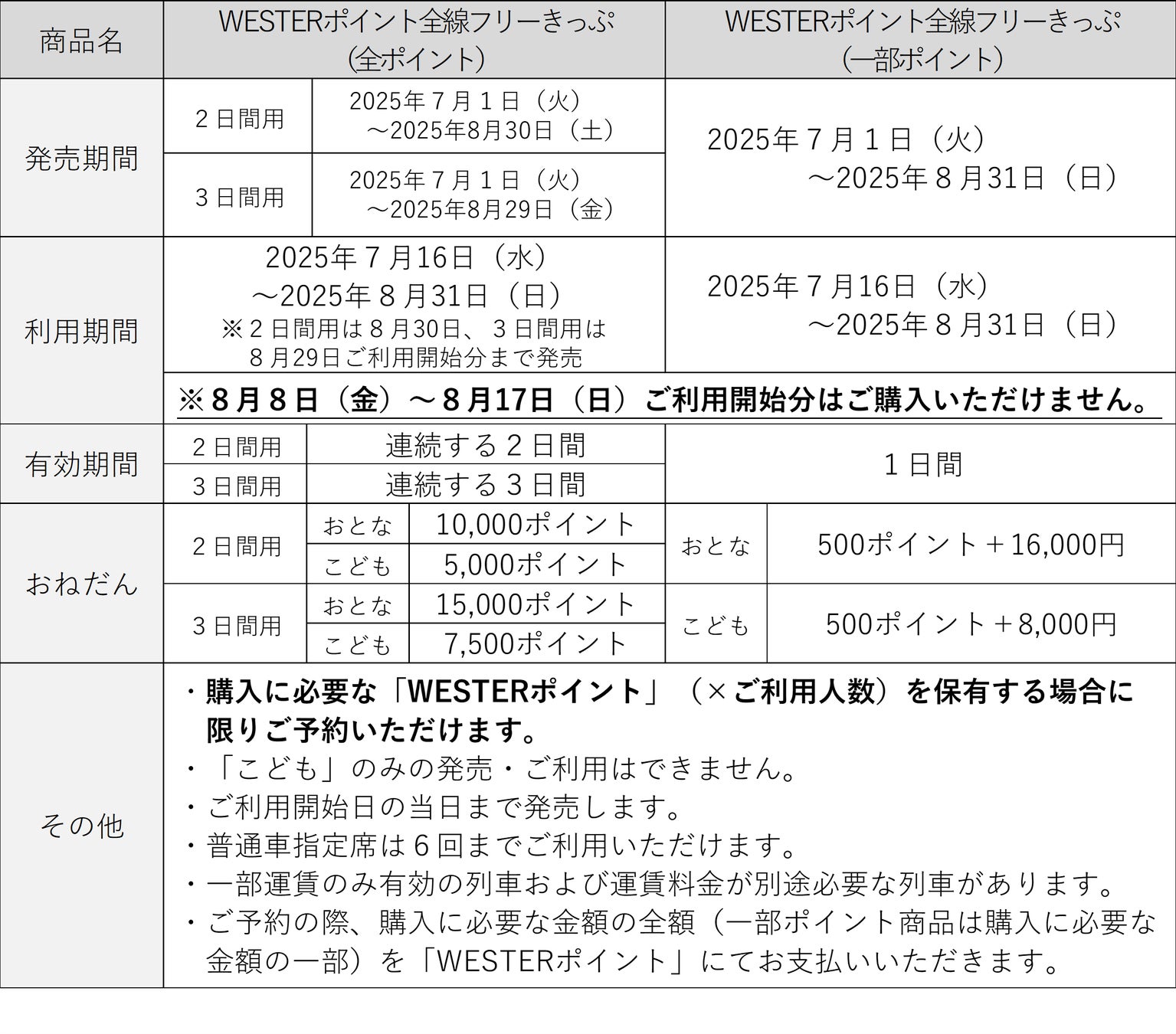 ( https://www.jr-odekake.net/navi/westerpoint_tetsudouriyou_gentei/ )」で必ずご確認ください。