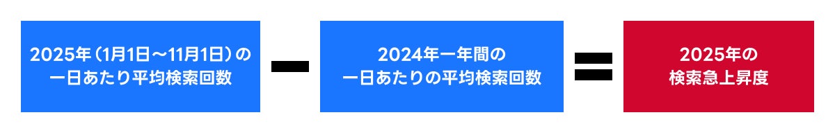2025年に、集計期間内の1日あたりの平均検索数が、前年と比べ増加した人物・作品から選出。