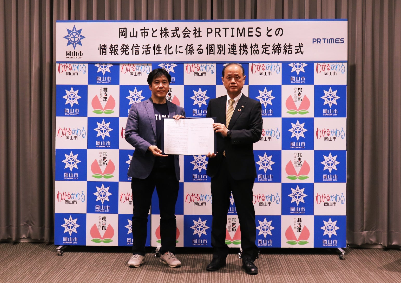 プレスリリース配信サービス「PR TIMES」等を運営する株式会社PR TIMES(所在地:東京都港区、代表取締役:山口拓己、東証プライム:3922)は2025年5月7日(水)、岡山県岡山市(市長:大森雅夫、以下、岡山市)とスタートアップや中小企業を始めとする岡山市内事業者の情報発信支援と、同市からの経済施策等の発信による産業振興を目的とした連携協定を締結いたしました。当社による中国・四国地域の自治体との連携は今回が初となり、全国では2025年4月に提携を発表した熊本市に続いて8例目となります。
