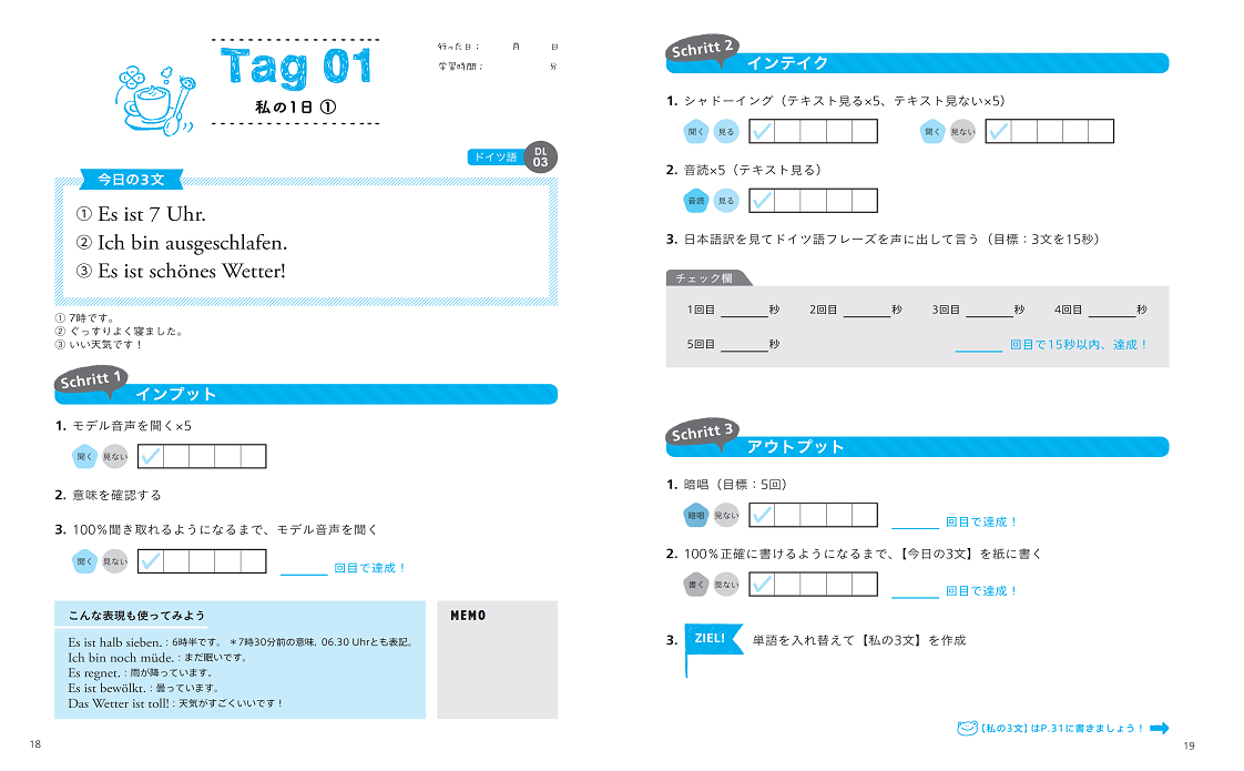 1日3文×3ステップで話せるドイツ語フレーズがどんどん増える!