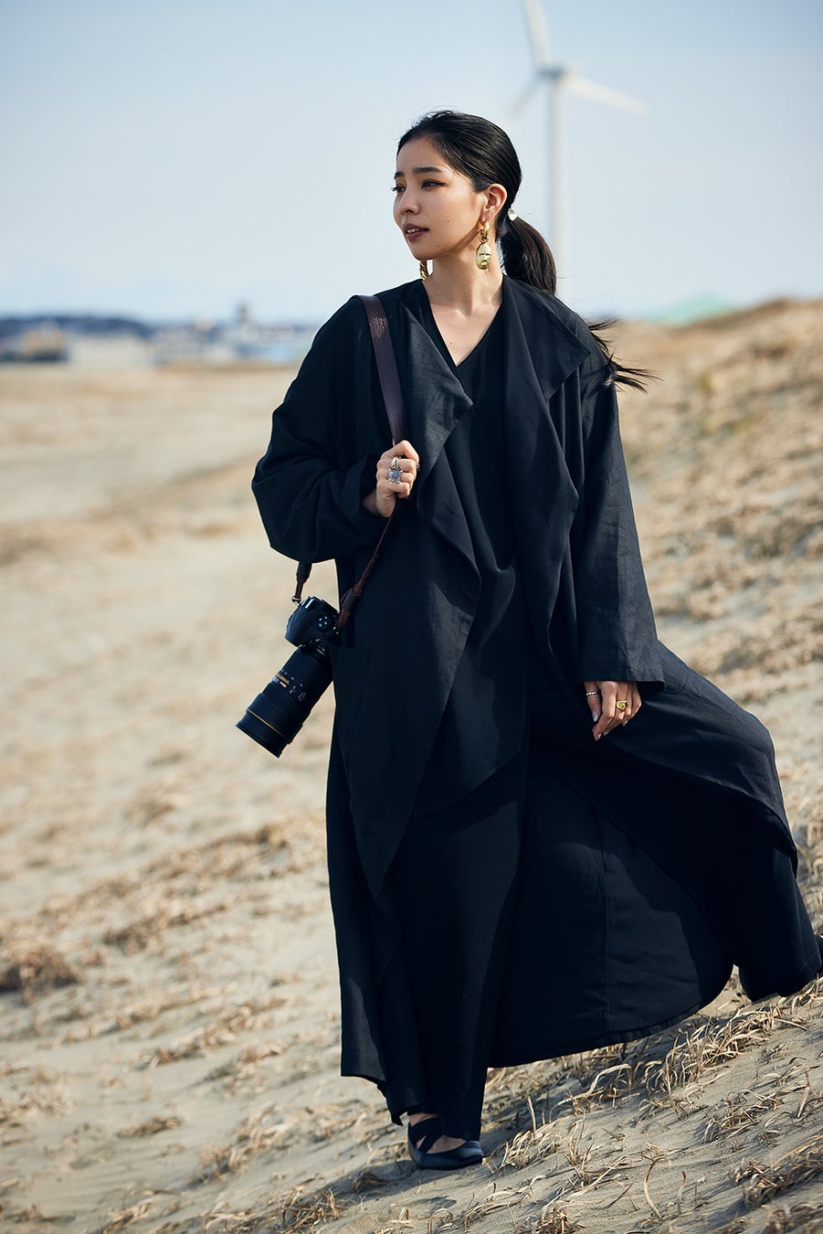 ヨシダナギさんは世界中に点在する少数・先住民族を追いかけ続ける写真家です。ファッションアイテムのこだわりは“ブラック”。そのスタイルは東京でも、アフリカでも変わりません。そんなヨシダナギさんからインスピレーションを受けて誕生したコラボアイテムは、「One to million [black] wear」と題し、1マイルから100万マイルまでをカバーする、全環境対応型ブラックウェア。家や近所へ出かけるときも、飛行機の中でもくつろげる着心地の良さと、そんなリラックスシーンでも隙を見せないかっこよさを兼ね備えています。BAYFLOWらしい心地よさもありながら、これまでにないしなやかでタフな世界観を提案していきます。