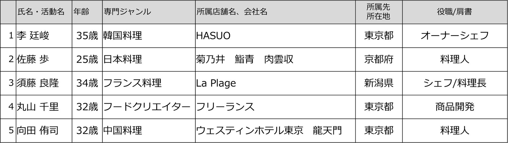 新時代を切り拓く“食のクリエイター”を目指す「35歳以下の料理人」