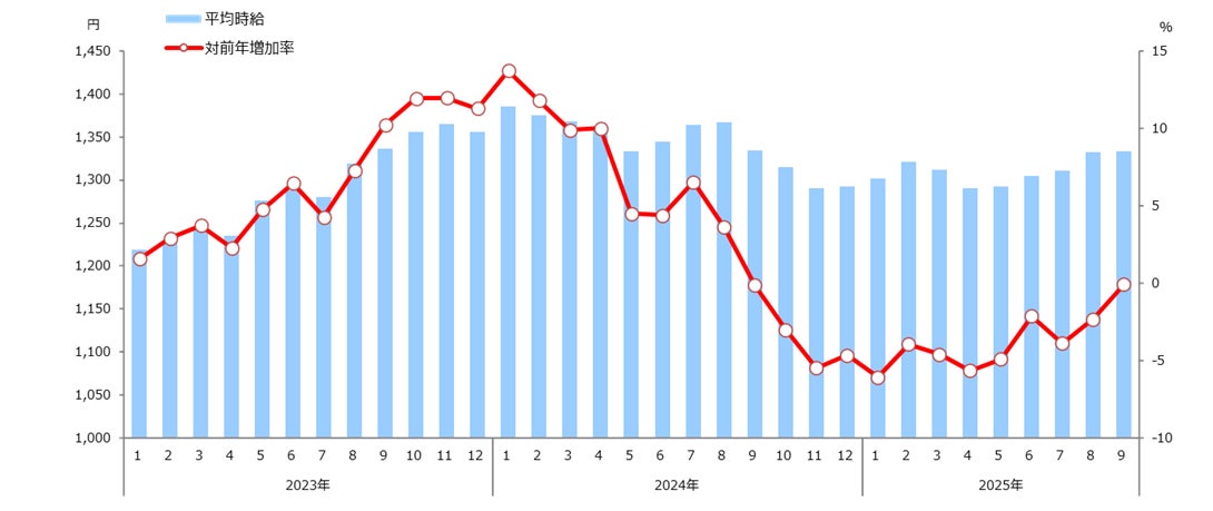 2025年9月度 アルバイト平均時給調査 全国の平均時給は1,334円
