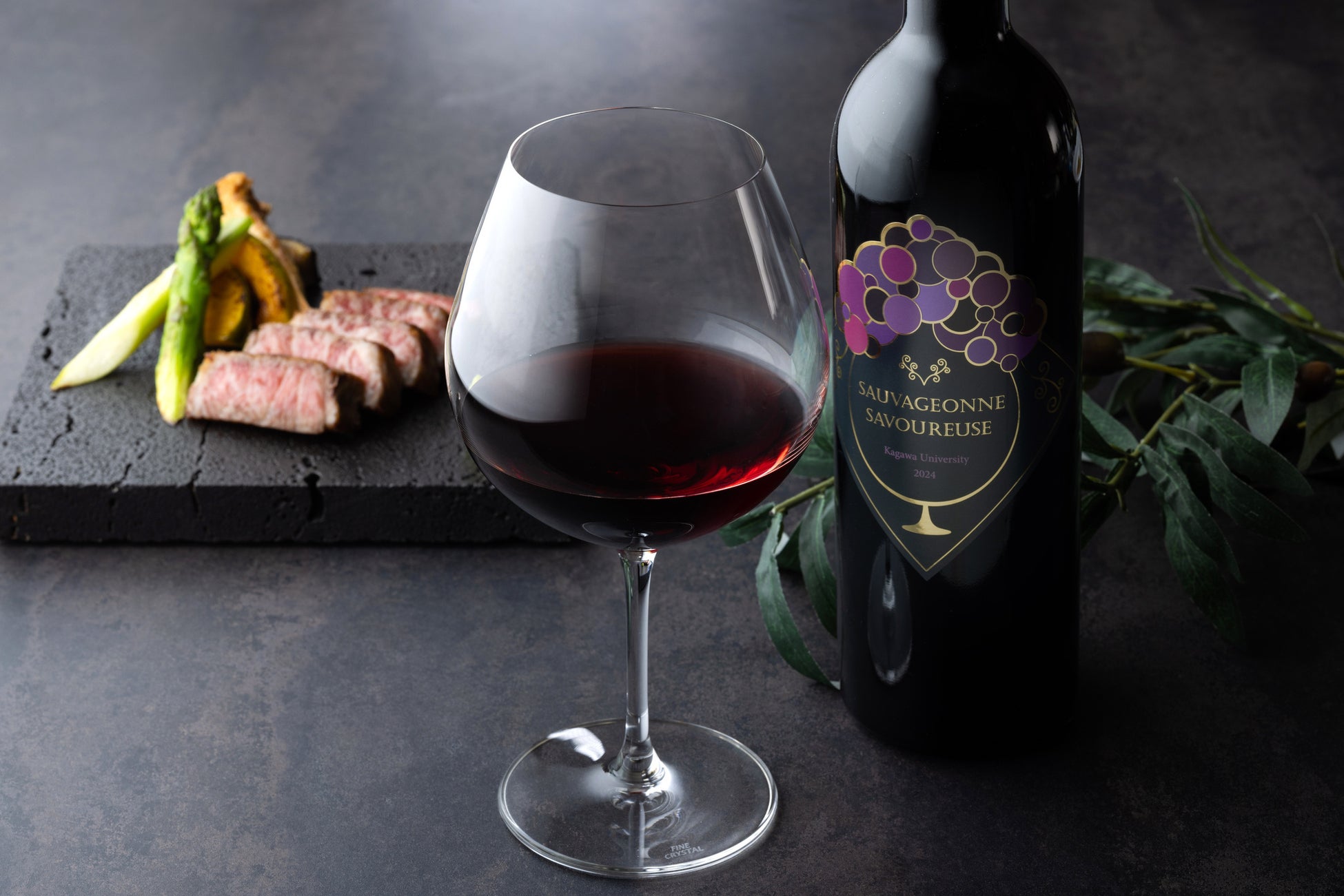 香川大学農学部が育成させたオリジナル品種のぶどう「香大農R-1」を100%使用したワインです。濃厚な色合いで、渋味がなく、のど越しの良い爽やかな味わいが楽しめます。