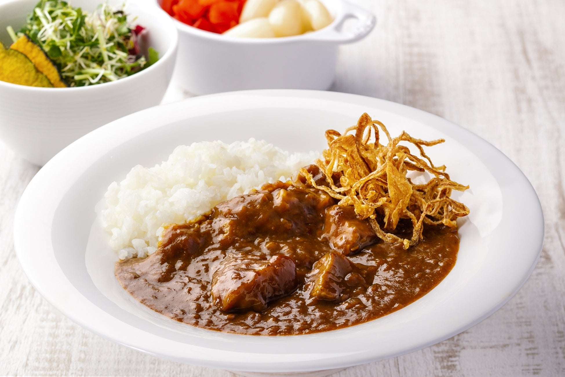 阪神・淡路大震災の被害により惜しまれつつも幕を閉じた同ホテルの伝統の味を忠実に再現し、玉ねぎ由来の甘味と、スパイシーな辛みを感じる唯一無二の一品です。