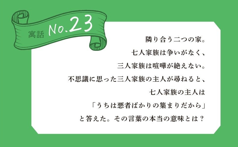 不思議に思った三人家族の主人が尋ねると、七人家族の主人は「うちは悪者ばかりの集まりだから」
