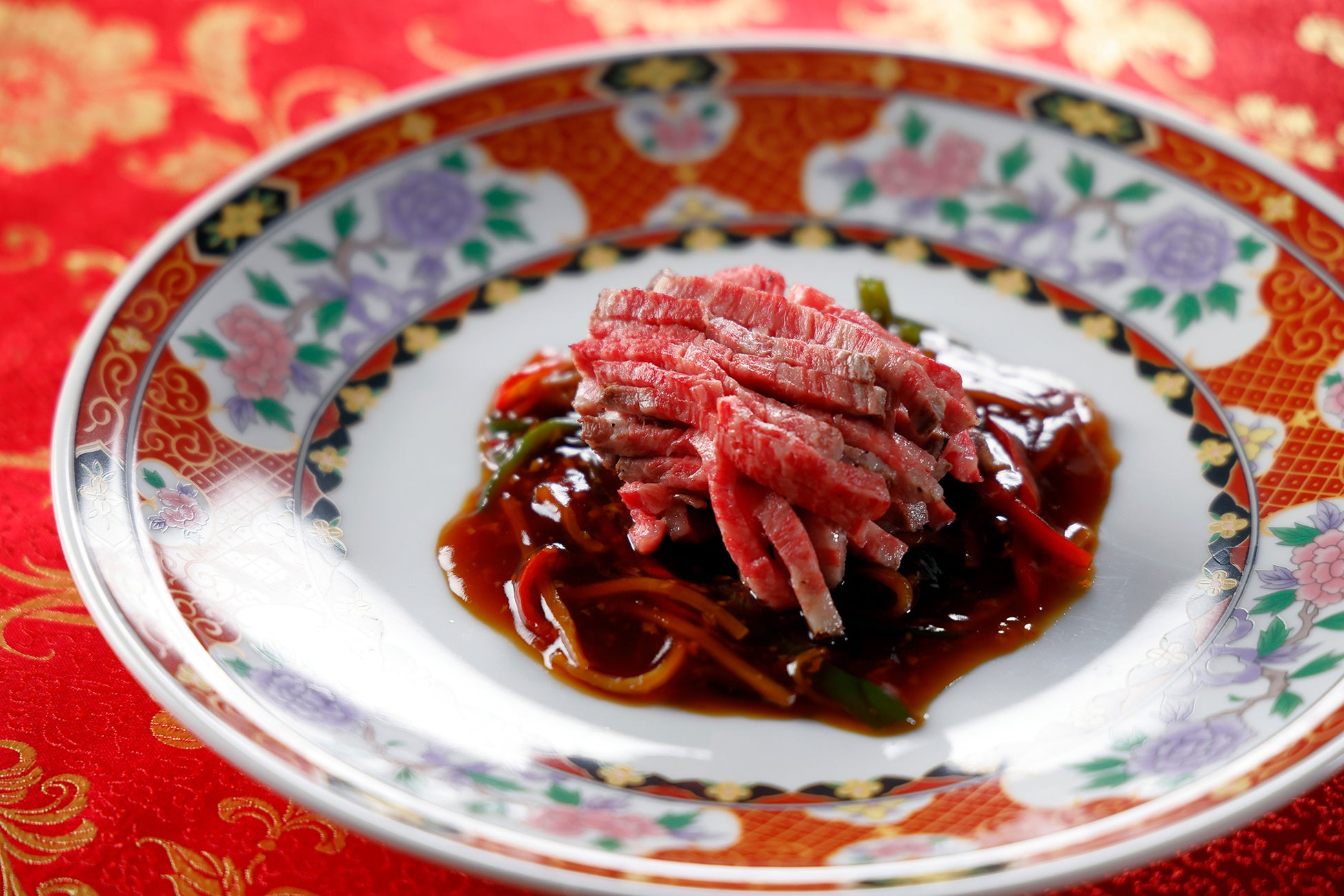口水鶏〈よだれ鶏〉/皮蛋豆腐〈ピータンと豆腐の白和え〉/辣白菜〈白菜と生姜の辛み甘酢漬け〉/干焼蛋蝦仁〈小エビのチリソース(卵入り)〉/軟炸子鶏〈鶏のから揚げ豆鼓和え〉/麻婆豆腐〈マーボー豆腐〉/青椒牛肉絲〈ローストビーフとピーマン炒め〉/咖哩炒飯〈カレーチャーハン〉/酸辣湯〈酢と胡椒の五目スープ〉/豚肉山椒拼〈豚肉の山椒風味ピザ〉/玻璃蒸蝦餃〈海老蒸し餃子〉・魷花焼売〈花鳥賊焼売〉(ワゴンサービス)