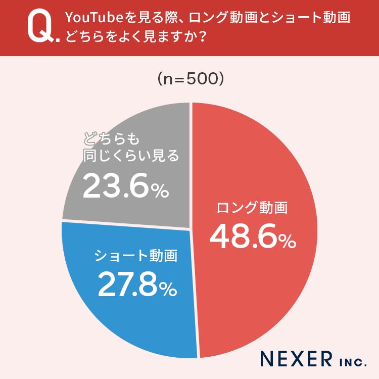 【YouTube視聴者500人に調査】48.6%が、ショート動画よりもロング動画を「よく見る」