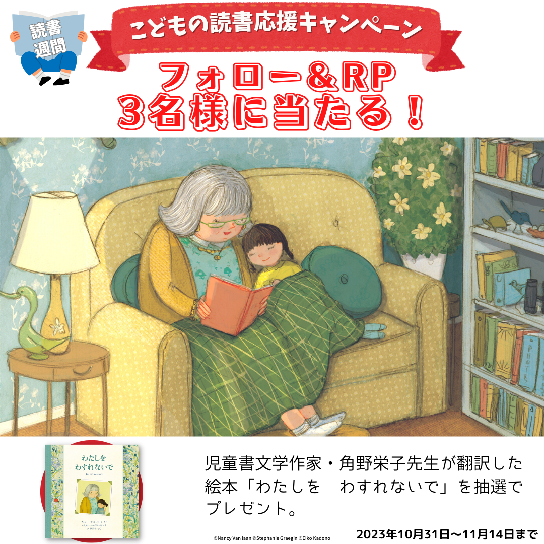 読書週間「こどもの読書応援キャンペーン」開催!魔法の文学館(江戸川区角野栄子児童文学館)開館も話題の児童書文学作家・角野栄子先生が翻訳した絵本『わたしを わすれないで』を抽選でプレゼント!