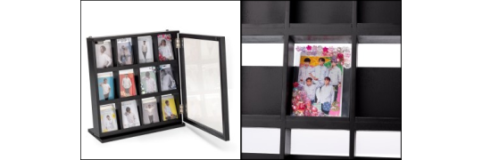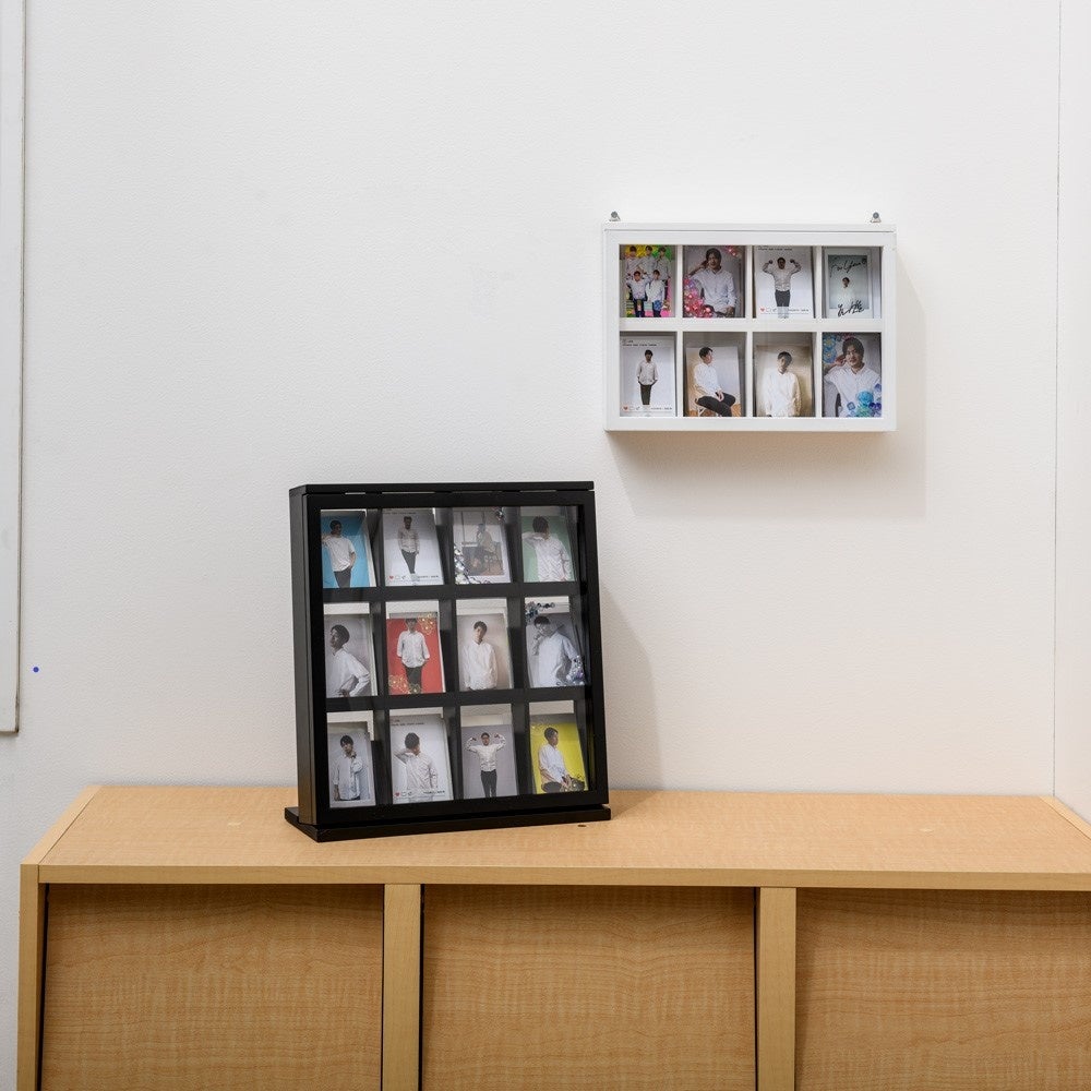大量にあるカードを飾って収納することができるカード収納です。収納部の奥行(内寸)わずか4cmの薄型で壁掛けにも置き型でも使用することができます。スリーブに入れて収納も可能な内寸なので大事なカードを守って収納できます。12か所収納タイプで約300枚収納できるほどの、収納力にこだわりました。