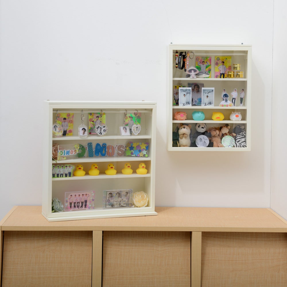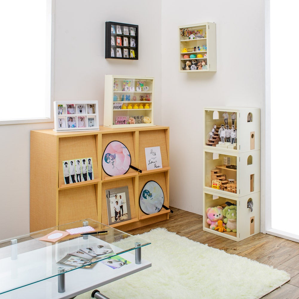 アクスタ、ぬいぐるみ、キーホルダーなど増えていくグッズ。でも、「場所がそんなに取れない」「部屋を片付けるのは面倒」そんなオタ活中社員が本気で考えた推し活グッズ収納です。薄型ながらも、かわいく楽しく飾ることができる収納です。