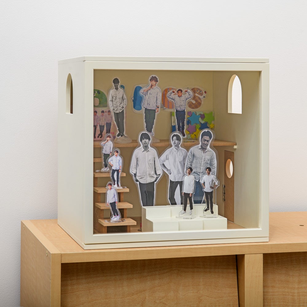 増えていく推し活グッズを気軽に楽しみながら、可愛く飾れます。一見ただの四角いボックスですが、開閉する窓や扉、床などディテールにこだわり、推しの部屋を演出しながら収納できます。階段やソファがあることでより部屋らしく、かつ効率よくグッズを飾れます。