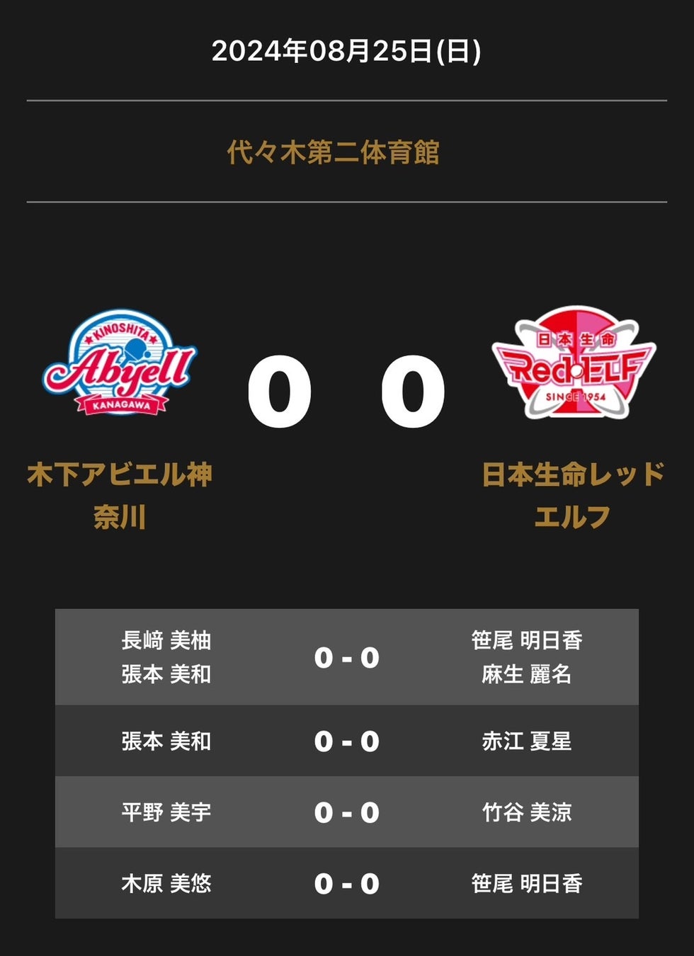ノジマTリーグ 2024-2025シーズン 公式戦 8月25日開催 木下アビエル神奈川 vs 日本生命レッドエルフ 対戦オーダー発表