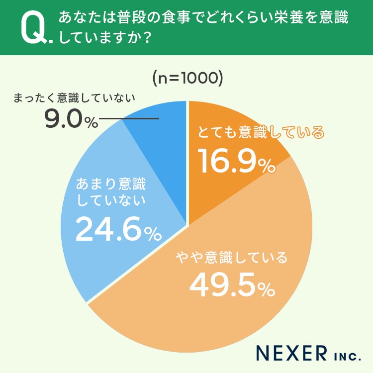 まずは、普段の食事でどれくらい栄養を意識しているか聞いてみました。