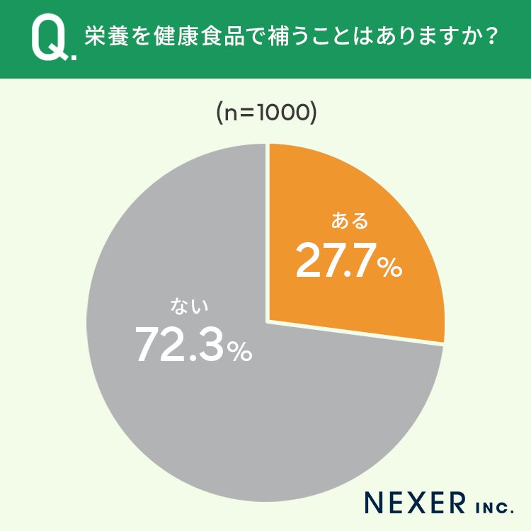 27.7%と3割近くの方が、栄養を健康食品で補うことが「ある」と回答しています。
