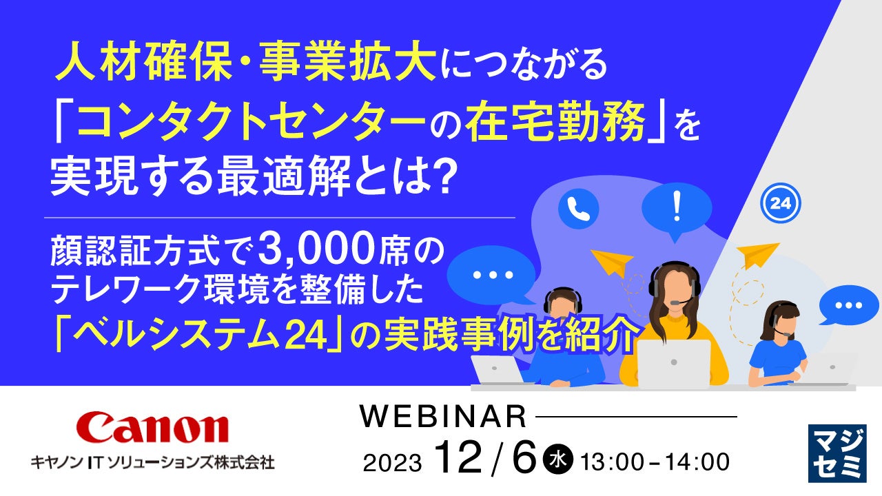 また、ベルシステム24が提供する在宅コンタクトセンターサービス「Bell@Home」、キヤノンITソリューションが提供する在宅オペレーターの働きやすさの確保と情報漏えい対策を両立できるクラウド型テレワーク支援サービス「テレワークサポーター」についてもご説明します。コールセンター事業における人材確保や事業拡大を実現する実現のヒントを得たい担当者の方は、ぜひご参加ください。