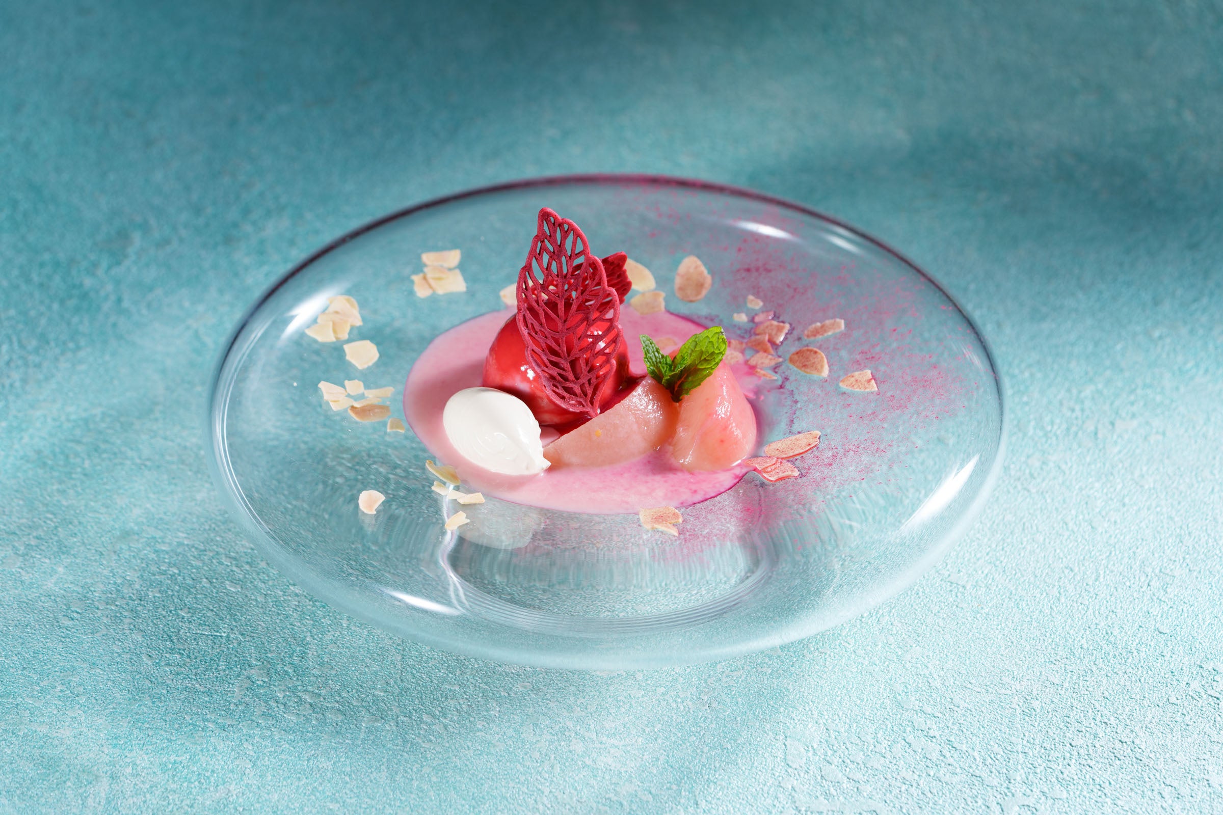 貝の王様と称される黒アワビのカッペリーニとホヤのエスカベッシュを盛り合わせたアミューズは、夏のディナーコースのスターターに相応しいさわやかな一皿。ブランドとうもろこしとしても知られ、高糖度の青森県産“獄きみ”を存分に味わえる温前菜は、ウニとともにとうもろこしをトッピングして表面を香ばしく炙ったブリュレです。添えられたとうもろこしのクリームスープと一緒に召し上がることで、濃厚なウニと海の香りが素材本来の甘みを引き立てます。仙台牛フィレ肉と牛たん、フォアグラを重ねた肉料理は、トリュフソースを添えて贅沢な一皿に仕立てました。宮城の郷土料理“しそ巻き”を当ホテル流にアレンジし、青しそと仙台味噌の風味とともにお楽しみいただけます。そのほか、東北六県の食材を使ったパテ アン クルートや、宮城県産穴子のスパイシーなブレゼをご用意。桃とほんのり酸味が効いたルビーチョコレートを合わせたデザートは、バニラアイスクリームとともにお召し上がりいただけます。