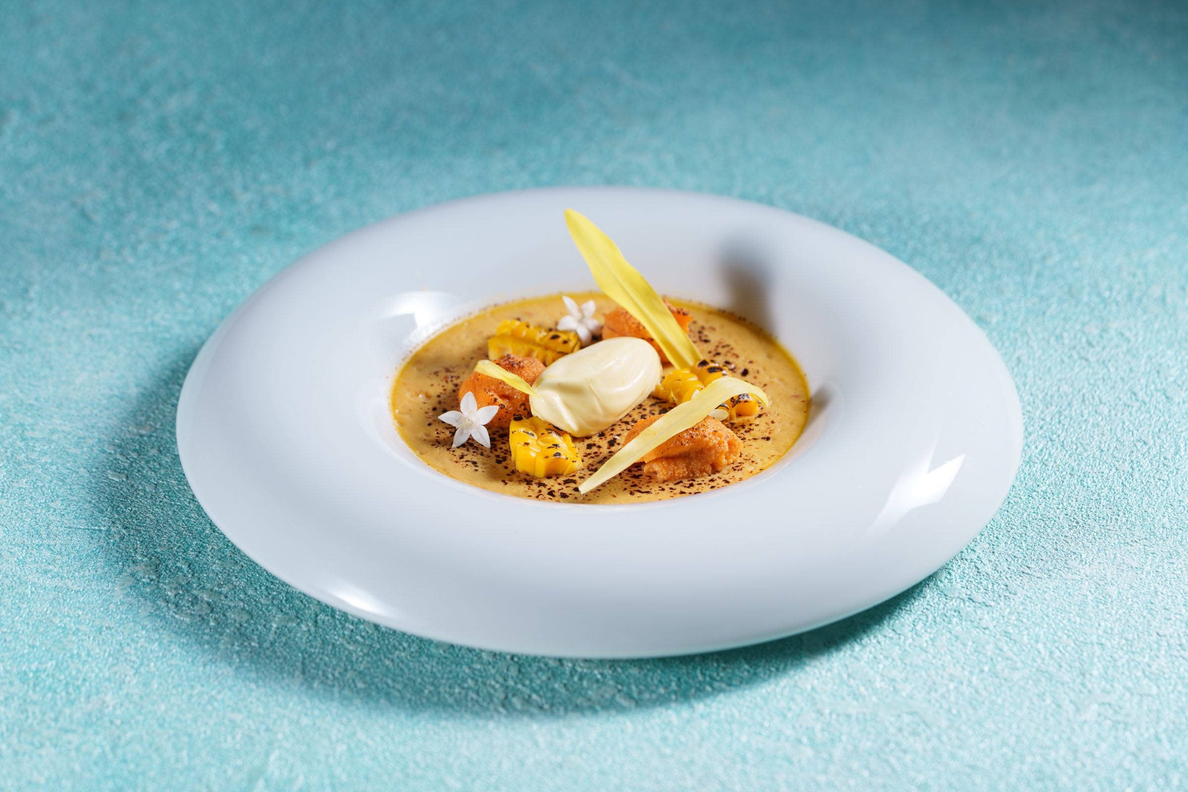青森県産“獄きみ”とうもろこしのソルベ ウニのブリュレ