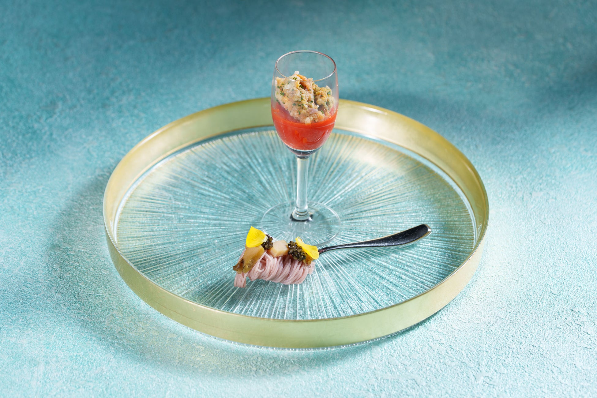 宮城県産ホヤのエスカベッシュ 赤パプリカのムース