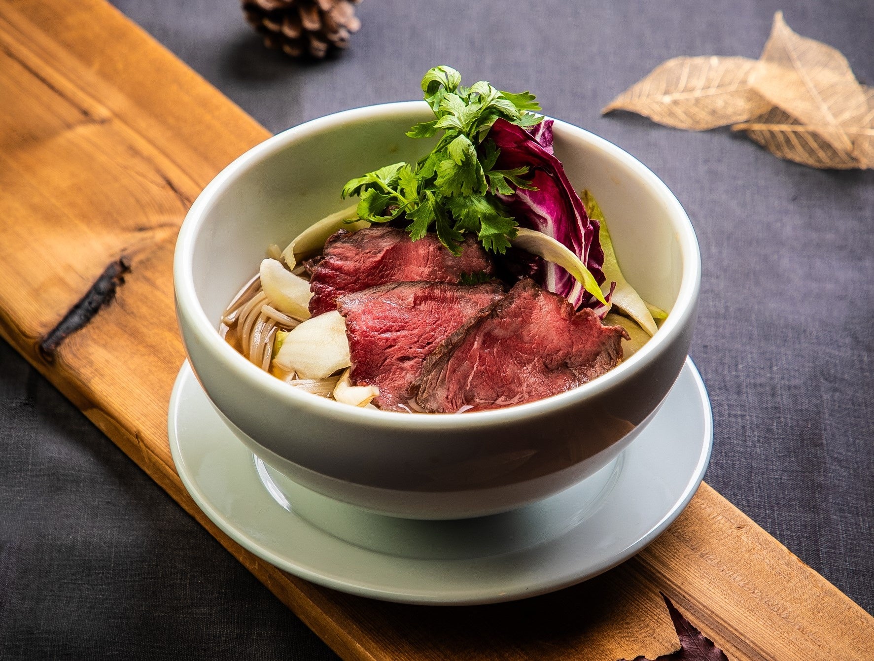 牛の旨味を感じながらもさっぱりと仕上げたスープ。アンチエイジング効果が期待できるチコリをふんだんに使った身体温まる一品。 蔵王牛ローストビーフの追加で贅沢なギルティを味わえます。