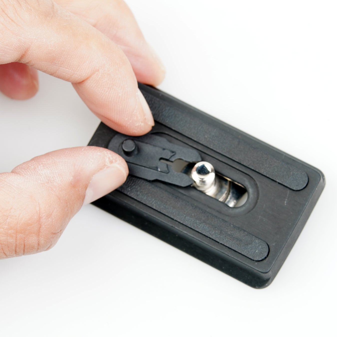 カメラネジを固定しているビデオピン付きプレートを引っ張ることで、プレートを取り外せます。ビデオピンを使用しない場合は、プレートを反転させて、カメラネジに取り付けて下しさい。