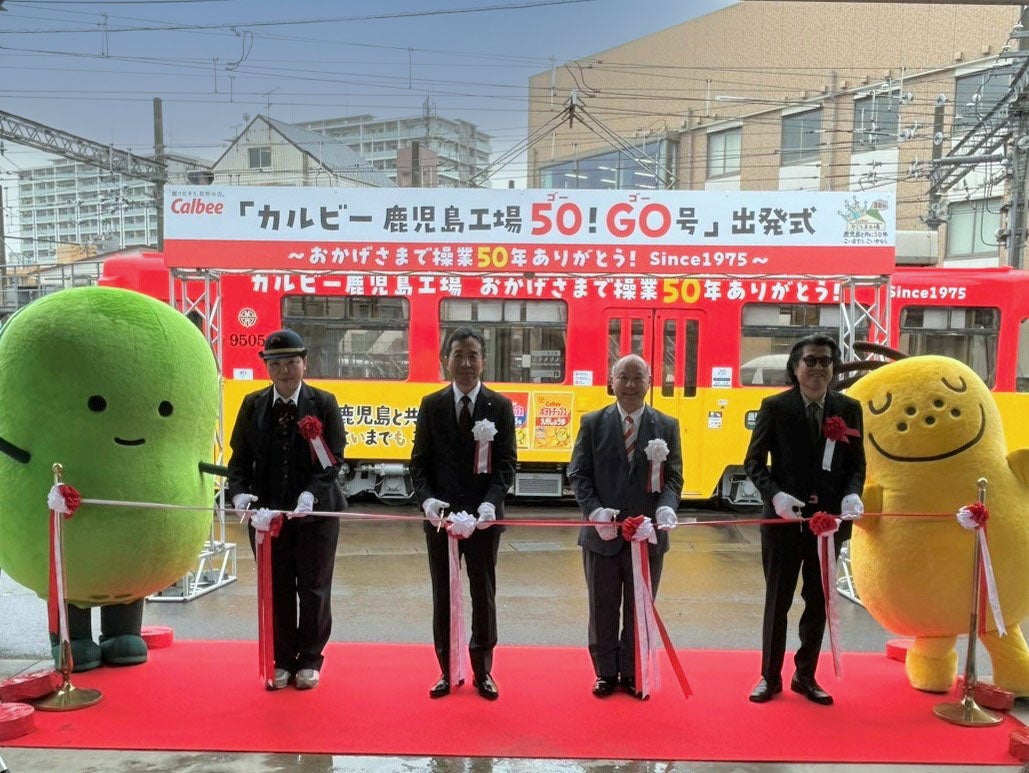 カルビー株式会社(本社:東京都千代田区、代表取締役社長:江原 信)の鹿児島工場(鹿児島市)は、1975年2月に創業して今年で50周年を迎えました。これを記念して、カルビー鹿児島工場オリジナルデザインの鹿児島市電の車両が2025年4月1日(火)から運行開始します。